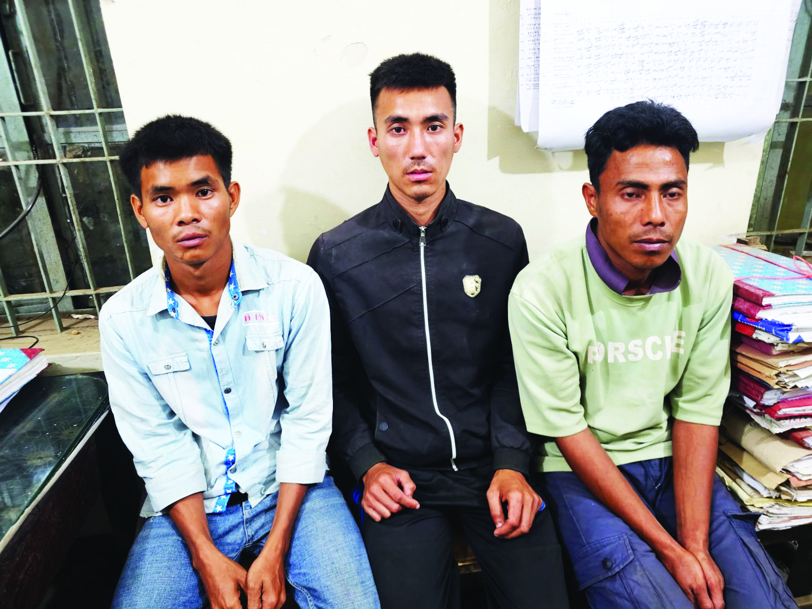 আটককৃতরা হলেন রাঙ্গামাটি জেলার রাজস্থলী উপজেলার বাসিন্দা থুইনুমং মার্মার ছেলে উয়ইমং মার্মা (২৫), বান্দরবানের রুমা উপজেলার মিলুচিং মার্মার ছেলে হলাচিংথোয়াই মার্মা (২৪) এবং একই এলাকার মংক্যাচিং মার্মার ছেলে গরাইমং মার্মা (৩০)। ঘটনার সত্যতা নিশ্চিত করে বিজিবি ৩৪ ব্যাটেলিয়নের অধিনায়ক লেফটেন্যান্ট কর্নেল এস এম খায়রুল আলম জানান, আটক যুবকদের বিরুদ্ধে প্রয়োজনীয় আইনানুগ ব্যবস্থা গ্রহণের প্রক্রিয়া চলছে। নাইক্ষ্যংছড়ি থানার ভারপ্রাপ্ত কর্মকর্তা (ওসি) আবদুল বাতেন মৃধা জানান, আটক আসামিদের বিরুদ্ধে বিশেষ ক্ষমতা আইনে মামলা রুজু করা হয়েছে। তাদের আদালতে সোপর্দ করা হবে।