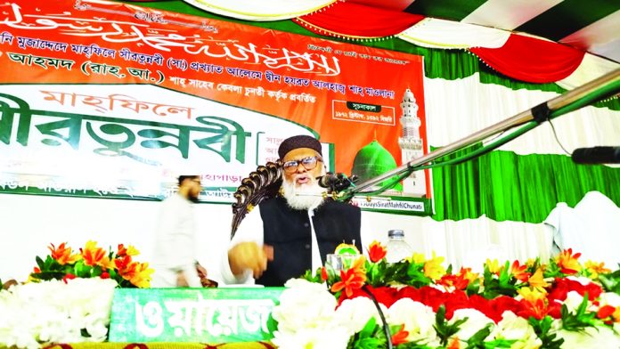 ধর্ম উপদেষ্টা ড. আ ফ ম খালিদ হোসেন বলেছেন, যারা দেশের সম্পদ লুট করে বিদেশে বাড়ি বানিয়েছেন তারা দেশপ্রেমিক না। যারা সোনার দেশকে লুটে খেয়েছে তাদের ক্ষমা নেই। কোনো আলেম দেশের সম্পদ লুট করার প্রমাণ নেই। এই দেশ সবার। এই দেশকে সবার ভালোবাসতে হবে। যদি রাজনৈতিক দলগুলো চায় তাহলে আগামী ফেব্রুয়ারিতে জাতীয় নির্বাচন অনুষ্ঠিত হবে। আমরা নির্বাচিত দলের হাতে ক্ষমতা হস্তান্তর করতে চাই। দেশে যার যার ধর্ম পালনের স্বাধীনতা রয়েছে। বাংলাদেশ ধর্ম পালনের ক্ষেত্রে বিশ্বের কাছে রোল মডেল হয়ে আছে। গতকাল শুক্রবার সন্ধ্যায় ১৯ দিন ব্যাপী চুনতি সীরত মাহফিলে প্রধান বক্তার বক্তব্যে তিনি এসব কথা বলেন।