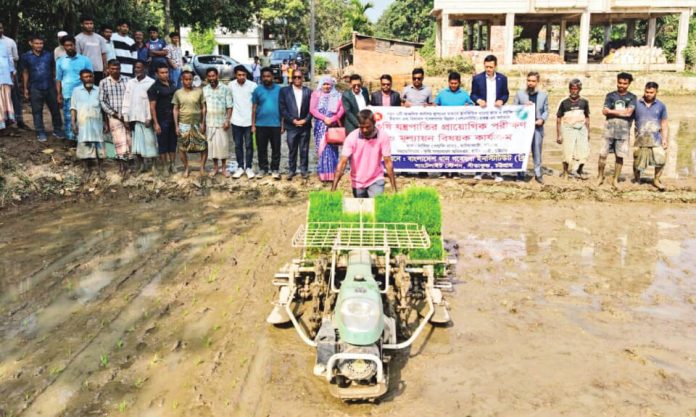 হাটহাজারীতে আধুনিক কৃষি যান্ত্রিকীকরণের মাধ্যমে ধান চাষে নতুন দিগন্তের সূচনা হয়েছে। স্থানভিত্তিক ধানের জাত ও প্রযুক্তি উদ্ভাবন এবং বিদ্যমান গবেষণাগার উন্নয়ন (এলএসটিডি) প্রকল্পের অর্থায়নে বাংলাদেশ ধান গবেষণা ইনস্টিটিউট (ব্রি) স্যাটেলাইট স্টেশন, চট্টগ্রামের উদ্যোগে এ কার্যক্রম বাস্তবায়ন করা হয়েছে। সম্প্রতি উপজেলার চারিয়া প্রযুক্তি গ্রামে কৃষি যন্ত্রপাতির প্রায়োগিক পরীক্ষণ ও মূল্যায়ন কার্যক্রমের অংশ হিসেবে কৃষকের জমিতে রাইস ট্রান্সপ্লান্টারের মাধ্যমে ধানের চারা রোপণ করা হয়। অনুষ্ঠানে প্রধান অতিথি ছিলেন কৃষি সমপ্রসারণ অধিদপ্তর, চট্টগ্রামের উপ–পরিচালক আপ্রু মারমা। তিনি বলেন, রাইস ট্রান্সপ্লান্টারের মাধ্যমে কম বয়সী চারা রোপণ করা সম্ভব হওয়ায় সময়, শ্রম ও উৎপাদন ব্যয় উল্লেখযোগ্যভাবে কমে আসবে। একই সঙ্গে ধানের ফলন বৃদ্ধি পাবে। আধুনিক ও প্রযুক্তিনির্ভর ধান চাষ সমপ্রসারণে ব্রি স্যাটেলাইট স্টেশন, চট্টগ্রাম গুরুত্বপূর্ণ ভূমিকা পালন করে যাচ্ছে। অনুষ্ঠানে সভাপতিত্ব করেন হাটহাজারী উপজেলা কৃষি কর্মকর্তা মো. মেজবাহ উদ্দিন। বিশেষ অতিথি ছিলেন কৃষি সমপ্রসারণ অধিদপ্তরের অতিরিক্ত উপ–পরিচালক ওমর ফারুক এবং ব্রি স্যাটেলাইট স্টেশন, চট্টগ্রামের বৈজ্ঞানিক কর্মকর্তা মোছা. আমিনা খাতুনসহ সংশ্লিষ্ট দপ্তরের কর্মকর্তারা। মোছা. আমিনা খাতুন জানান, এলএসটিডি প্রকল্পের আওতায় চারিয়া গ্রামকে একটি প্রযুক্তি গ্রাম হিসেবে গড়ে তোলার লক্ষ্যে আধুনিক কৃষি যন্ত্রপাতির ব্যবহার, মাঠ পর্যায়ের প্রদর্শনী এবং গবেষণাভিত্তিক কার্যক্রম বাস্তবায়ন করা হচ্ছে। উল্লেখ্য, এলএসটিডি প্রকল্পের আওতায় চারিয়া প্রযুক্তি গ্রামে কৃষি যন্ত্রপাতির প্রায়োগিক পরীক্ষণের পাশাপাশি আধুনিক ধানের জাত জনপ্রিয়করণ, ধানের উৎপাদন ও ব্যবস্থাপনা বিষয়ে গবেষণা কার্যক্রম পরিচালনা এবং সংশ্লিষ্ট এলাকার উপযোগী জাত ও প্রযুক্তি উদ্ভাবনে নিরলসভাবে কাজ করে যাচ্ছে বাংলাদেশ ধান গবেষণা ইনস্টিটিউট (ব্রি)।