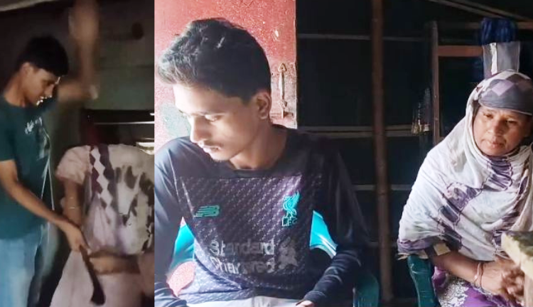 ভাইরাল হওয়া ১ মিনিট ১১ সেকেন্ডের ভিডিওতে দেখা যায়, ছেলের হাতে থাকা একটি দা কেড়ে নিতে মায়ের সাথে ধস্তাধস্তি হওয়ার একপর্যায়ে মায়ের উপর হাত তুলেন ওই কিশোর ছেলে। এছাড়া ছেলেকে টাকা দেওয়ার সম্মতি দিলেও শান্ত হয়নি ছেলে।