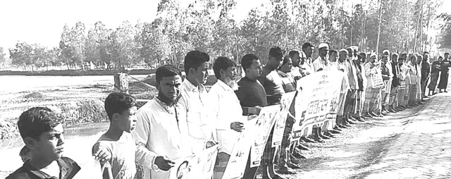 নুরুদ্দিনের সভাপতিত্বে মানববন্ধনে জালাল উদ্দিন, মোস্তাফিজ, সুর আহমদ, আইয়ুব আলী, হোসেন আমিন, দিদার আলম, আমির হোসেন, কাশেম, জয়নালসহ স্থানীয়রা বলেন, বিগত আওয়ামী স্বৈরাচার সরকারের আমলে ক্ষমতার দাপট দেখিয়ে স্থানীয় অসহায় মানুষের জায়গা জোরপূর্বক দখল অবৈধ ইটভাটা তৈরি করা হয়। ঘনবসতিপূর্ণ এলাকায় ইটভাটা নির্মাণ করায় এলাকার পরিবেশ ধ্বংসের পাশাপাশি অসহায় মানুষের শত শত একর জায়গাও ধ্বংস করে দেওয়া হয়েছে। এতে লাখ লাখ টাকার ক্ষতিগ্রস্ত হয়েছে এলাকার কয়েক শতাধিক কৃষি পরিবার। অবিলম্বে প্রশাসনের কাছে সুষ্ঠু তদন্তের দাবি জানিয়েছে মানববন্ধনে উপস্থিত সর্বসাধারণ। প্রেস বিজ্ঞপ্তি।