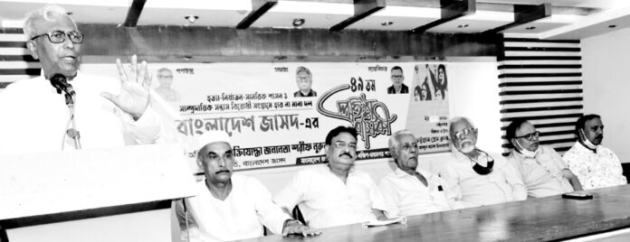 জাসদ চট্টগ্রাম উত্তর, দক্ষিণ ও মহানগর শাখার যৌথ উদ্যোগে গতকাল মঙ্গলবার দলের ৪৯তম প্রতিষ্ঠা বার্ষিকী উদযাপন উপলক্ষে এক আলোচনা সভা চট্টগ্রাম প্রেস ক্লাবের ইঞ্জিনিয়ার আবদুল খালেক মিলনায়তনে অনুষ্ঠিত হয়। এতে জাসদ নেতৃবৃন্দ মুক্তিযুদ্ধের চেতনায় অসাম্প্রদায়িক গণতান্ত্রিক বাংলাদেশ গঠনে সর্বস্তরের রাজনৈতিক ও সামাজিক শক্তি সমূহকে ঐক্যবদ্ধ হওয়ার আহ্বান জানান। জাসদ দক্ষিণ জেলা শাখার সভাপতি বীর মুক্তিযোদ্ধা নুরুল আলম মন্টুর সভাপতিত্বে এবং উত্তর জেলা শাখার সাধারণ সম্পাদক এস.এম. আখতারুল আলমের সঞ্চালনায় এতে প্রধান অতিথি ছিলেন জাসদ কেন্দ্রীয় স্থায়ী কমিটির সদস্য ইন্দু নন্দন দত্ত। বক্তব্য রাখেন এড. আবু মোহাম্মদ হাসেম, মোহাম্মদ খালেদ, নাসিরুল নবাব, জাহাঙ্গীর হোসেন চৌধুরী, ভানু রঞ্জন চক্রবর্তী, হাজী আবু বক্কর, স্বপন চৌধুরী, হাজী সরওয়ার আলম চৌধুরী, হায়দার আলী, দেলওয়ার হোসেন, জসীম উদ্দীন মোবারক, অধ্যক্ষ সমীর দাশ, আবদুল লতিফ, মোহাম্মদ ইউসুফ প্রমুখ।