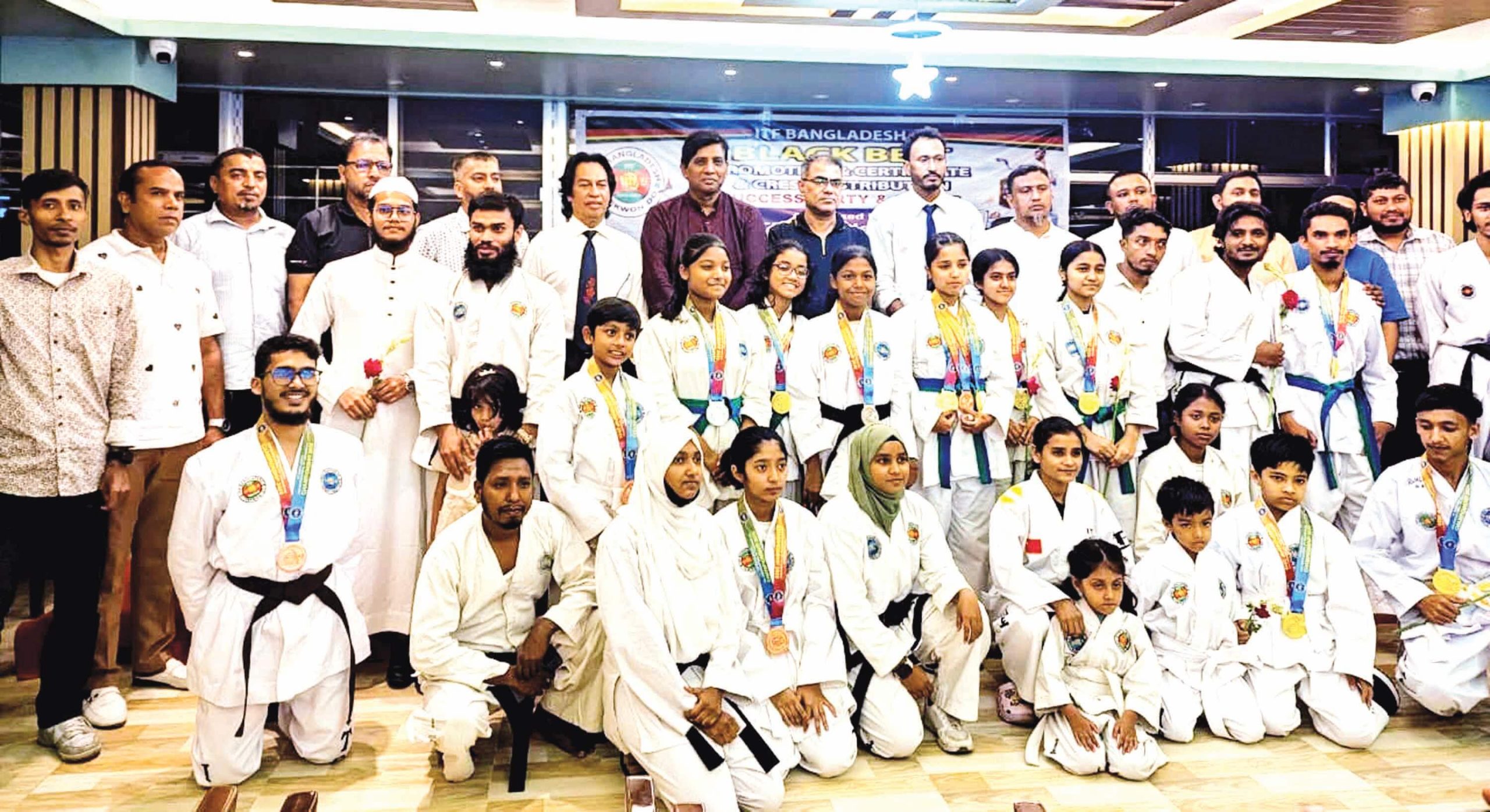 চট্টগ্রামে আইটিএফ বাংলাদেশ আয়োজিত ব্ল্যাক বেল্ট প্রোমোশন, সার্টিফিকেট ও ক্রেস্ট বিতরণ গত ২০ এপ্রিল অনুষ্ঠিত হয়। অনুষ্ঠানে প্রধান অতিথি ছিলেন মোহাম্মদ সালাহউদ্দিন, সদস্য সচিব সিজেকেএস অ্যাডহক কমিটি। উদ্বোধক ছিলেন আইটিএফ বাংলাদেশের উপদেষ্টা মোহাম্মদ মশিউল আলম স্বপন। বিশেষ অতিথি ছিলেন মুহাম্মদ আজহারুল হক আজাদ,ডা. শফি, শিহান প্রিন্সিপাল অজয় দে,মোহাম্মদ আশিক রহমান। অতিথি ছিলেন এম.ডি. আয়াস উদ্দিন, সৈয়দ আফতাব উদ্দিন, আব্দুল হান্নান কাজল কারাতে প্রশিক্ষক, নথনেল গোমস, আয়াত উল্লাহ খান, মো. জাহেদ হোসেন, মোহাম্মদ সাজ্জাদ হোসেন, ফখরুল আলম প্রমুখ। ব্ল্যাক বেল্ট প্রাপ্তরা হলেন: শারমিন আক্তার (২য় ড্যান), মাহমুদা ঈশিতা (২য় ড্যান), এহাসানুল হক, মো. আরফিন, মো. শাওন, মো. জাহেদ, মো. হুসামা, মো. সাইদুল (১ম ড্যান), মৃত্তিকা, মো. মাহাদি, সুবাইতা, মো. আলাউদ্দিন, মো. আলমগীর (১ম ড্যান), অনন্যা মল্লিক, মো. রোমান প্রমুখ। স্বর্ণপদক: দুষ্ট, রিয়া, অঙ্কিতা, রাশেদুর, অনন্যা চৌধুরী, মো. জামিল, রৌপ্যপদক: তানসি, দেবদুহিতা, মো. রোমান, অনন্যা মল্লিক, মো. শাওন, ব্রোঞ্জপদক: ইকরাম, আরিফ, মৃত্তিকা। অনুষ্ঠানে সভাপতিত্ব করেন মোহাম্মদ আলী আকবর (৪র্থ ড্যান)। প্রেস বিজ্ঞপ্তি।