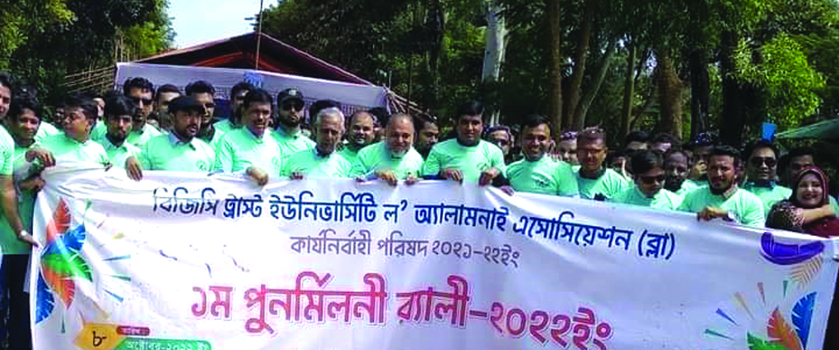 বিজিসি ট্রাস্ট ইউনিভার্সিটি আইন বিভাগের প্রাক্তন ছাত্র-ছাত্রীদের সংগঠন বিজিসি ট্রাস্ট ইউনিভার্সিটি ল এলমনাই এসোসিয়েশান (ব্লা) এর উদ্যোগে পুনর্মিলনী অনুষ্ঠান সংগঠনের সভাপতি মো. নিজামউদ্দিনের সভাপতিত্বে বিজিসি ট্রাস্ট ইউনিভার্সিটি ক্যাম্পাসে সম্পন্ন হয়েছে। অনুষ্ঠানে প্রধান অতিথি ছিলেন বিজিসি ট্রাস্ট ইউনিভার্সিটির উপাচার্য প্রফেসর ড. এ এফ এম আওরঙ্গজেব। উদ্বোধক ছিলেন বিজিসি ট্রাস্ট ইউনিভার্সিটির আইন বিভাগের উপদেষ্টা প্রফেসর এ বি এম আবু নোমান। বিশেষ অতিথি ছিলেন চট্টগ্রাম জেলা আইনজীবী সমিতির সভাপতি অ্যাডভোকেট আবু মোহাম্মদ হাসেম, চট্টগ্রাম জেলা আইনজীবী সমিতির সাধারণ সম্পাদক অ্যাডভোকেট এ এইচ এম জিয়াউদ্দিন। অ্যাডভোকেট মো. ফোরকান উদ্দিন খোকনের সঞ্চালনায় অনুষ্ঠানে বক্তব্য রাখেন আইন বিভাগের ভারপ্রাপ্ত চেয়ারম্যান মো. আবদুল হান্নান, ডেপুটি রেজিস্ট্রার সালাহউদ্দিন শাহরিয়ার, আইন বিভাগের শিক্ষক আমিনুল হক সিদ্দিকী প্রমুখ।