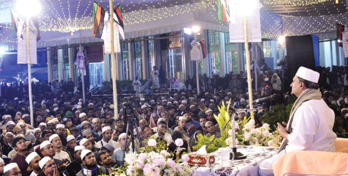 গাউসুল আযম হযরত মাওলানা শাহ্ সুফি সৈয়দ আহমদ উল্লাহ্ মাইজভাণ্ডারীর (ক.) দ্বিশততম জন্মবার্ষিকী ও ১২০তম ‘মহান ১০ মাঘ উরস শরিফ’ উপলক্ষে মাইজভাণ্ডার শরিফ ‘দরবার–ই গাউসুল আযম মাইজভাণ্ডারী’র গাউসিয়া হক মঞ্জিলের ব্যবস্থাপনায় মাইজভাণ্ডার শরিফ শাহী ময়দানে সপ্তম “তাযকেরা–এ–চেরাগে উম্মতে আহমদী (দ.) মাহফিল–২০২৬” গত শনিবার অনুষ্ঠিত হয়েছে। মাওলানা মুহাম্মদ মুজিবুল হক মাইজভাণ্ডারী ও মাওলানা মুহাম্মদ আনোয়ার হোসেনের যৌথ সঞ্চালনায় মাহফিলে বক্তব্য রাখেন জামেয়া আহমদিয়া সুন্নিয়া আলিয়া কামিল মাদ্রাসার অধ্যক্ষ মাওলানা কাযী আব্দুল আলীম রেজভী, চট্টগ্রাম বিশ্ববিদ্যালয় আরবি বিভাগের অধ্যাপক ড. মাওলানা মোহাম্মদ জাফর উল্লাহ, মাদ্রাসা–এ–গাউসুল আযম মাইজভাণ্ডারীর অধ্যক্ষ মাওলানা মুহাম্মদ আবুল কাছেম, উপাধ্যক্ষ মাওলানা মুহাম্মদ মঈনুদ্দিন, মাইজভাণ্ডার শাহী জামে মসজিদের খতিব মাওলানা মুহাম্মদ বশিরুল আলম মাইজভাণ্ডারী ও সাবেক খতিব মাওলানা মুহাম্মদ নুরুল ইসলাম ফোরকানী। মাহফিলে সভাপতিত্ব করেন মাইজভাণ্ডার শরিফ দরবারে গাউসুল আযম মাইজভাণ্ডারী গাউসিয়া হক মঞ্জিলের সাজ্জাদানশীন ও শাহানশাহ্ হযরত সৈয়দ জিয়াউল হক মাইজভাণ্ডারী (ক.) ট্রাস্টের ম্যানেজিং ট্রাস্টি শাহ্ সুফি সৈয়দ মোহাম্মদ হাসান মাইজভাণ্ডারী (মা.জি.আ.)। তিনি বলেন, আওলিয়াগণ ধনী–দরিদ্র, ধর্ম–বর্ণ ও উঁচু–নিচু শ্রেণির মধ্যে বৈষম্য করেন না। মাহফিলে অতিথি হিসেবে আরো উপস্থিত ছিলেন মাইজভাণ্ডারী গাউসিয়া হক কমিটি বাংলাদেশ কেন্দ্রীয় পর্ষদের সভাপতি রেজাউল আলী জসীম চৌধুরী, তাজকিয়ার কেন্দ্রীয় উপদেষ্টা আবু নাসের নুর অন্তুু, নারায়নহাট ইসলামিয়া ফাজিল মাদ্রাসার অধ্যক্ষ মাওলানা আ.ও.ম. ফারুক হোসাইন, ফটিকছড়ি জামেউল উলুম ফাজিল (ডিগ্রি) মাদ্রাসার ভারপ্রাপ্ত অধ্যক্ষ মাওলানা মোঃ হুমায়ন কবির মজুমদার, মুনিরুল উলুম বারীয়া ইসলামিয়া আলিম মাদ্রাসার আধ্যক্ষ মাওলানা মুহাম্মদ ফখরুদ্দীন, মহি উসুন্নাহ মাদ্রাসার অধ্যক্ষ মাওলানা আলী আজম হাশেমী, সমিতিরহাট ইসলামিয়া আলিম মাদ্রাসার অধ্যক্ষ মাওলানা মুহাম্মদ ইলিয়াস খান, নানুপুর মহিলা আলিম মাদ্রাসার অধ্যক্ষ মাওলানা আহমদ উল্লাহ, আশেকানে আউলিয়া ফাজিল মাদ্রাসার অধ্যক্ষ মাওলানা রিদুয়ানুল হক। এছাড়াও উপস্থিত ছিলেন ফটিকছড়ি, হাটহাজারী ও রাউজান উপজেলার বিভিন্ন দ্বীনি শিক্ষা প্রতিষ্ঠানের প্রধান, সহ–প্রধান, মাইজভাণ্ডারী গাউসিয়া হক কমিটি বাংলাদেশ কেন্দ্রীয় পর্ষদের সদস্যবৃন্দ, মাদ্রাসা–এ–গাউসুল আযম মাইজভাণ্ডারী এবং উম্মুল আশেকীন মুনাওয়ারা বেগম এতিমখানা ও হেফজখানার শিক্ষকমণ্ডলী এবং স্থানীয় গণ্যমান্য ব্যক্তিবর্গ। মিলাদ–কিয়াম ও তাওয়াল্লোদে গ