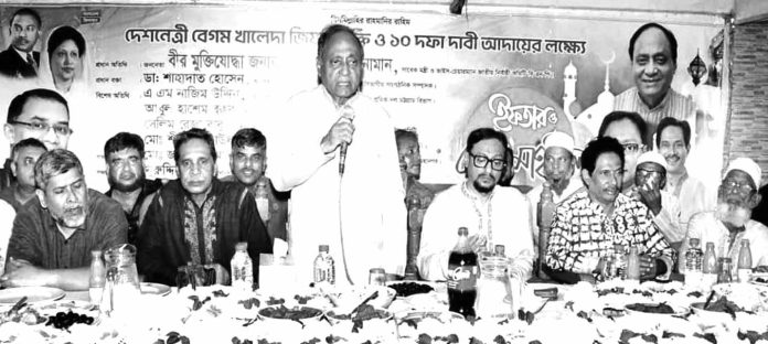 খালেদা জিয়ার নিঃশর্ত মুক্তি ও বিএনপির ১০ দফা দাবিতে মহানগর জাতীয়তাবাদী মোটর চালক দলের উদ্যোগে গতকাল বুধবার পাহড়াতলী সাগরিকা স্কয়ার কমিউনিটি সেন্টারে আয়োজিত আলোচনা সভা ও ইফতার মাহফিলে তিনি প্রধান অতিথির বক্তব্য রাখছিলেন। মহানগর জাতীয়তাবাদী মোটর চালকদলের সভাপতি জাহাঙ্গীর আলমের সভাপতিত্বে আলোচনা সভায় প্রধান বক্তা ছিলেন মহানগর বিএনপির আহ্বায়ক ডা. শাহাদাত হোসেন। বিশেষ অতিথি ছিলেন বিএনপির কেন্দ্রীয় শ্রম বিষয়ক সম্পাদক এ এম নাজিম উদ্দিন, মহানগর বিএনপির সদস্য সচিব আবুল হাশেম বক্কর, মোটর চালকদলের কেন্দ্রীয় সভাপতি সেলিম রেজা বাবু, সাধারণ সম্পাদক শীপন বকাউল। বক্তব্য দেন, শামসুল আলম, শ ম জামাল, আহমেদুল আলম রাসেল, গাজী সিরাজ, মোশারফ হোসেন দীপ্তি, জসীম উদ্দিন জিয়া, মোহাম্মদ সাইফুল, শফিউল্লাহ, খাজা আলাউদ্দিন, আলী হায়দার, নুর উদ্দিন মুন্না প্রমুখ। প্রেস বিজ্ঞপ্তি।