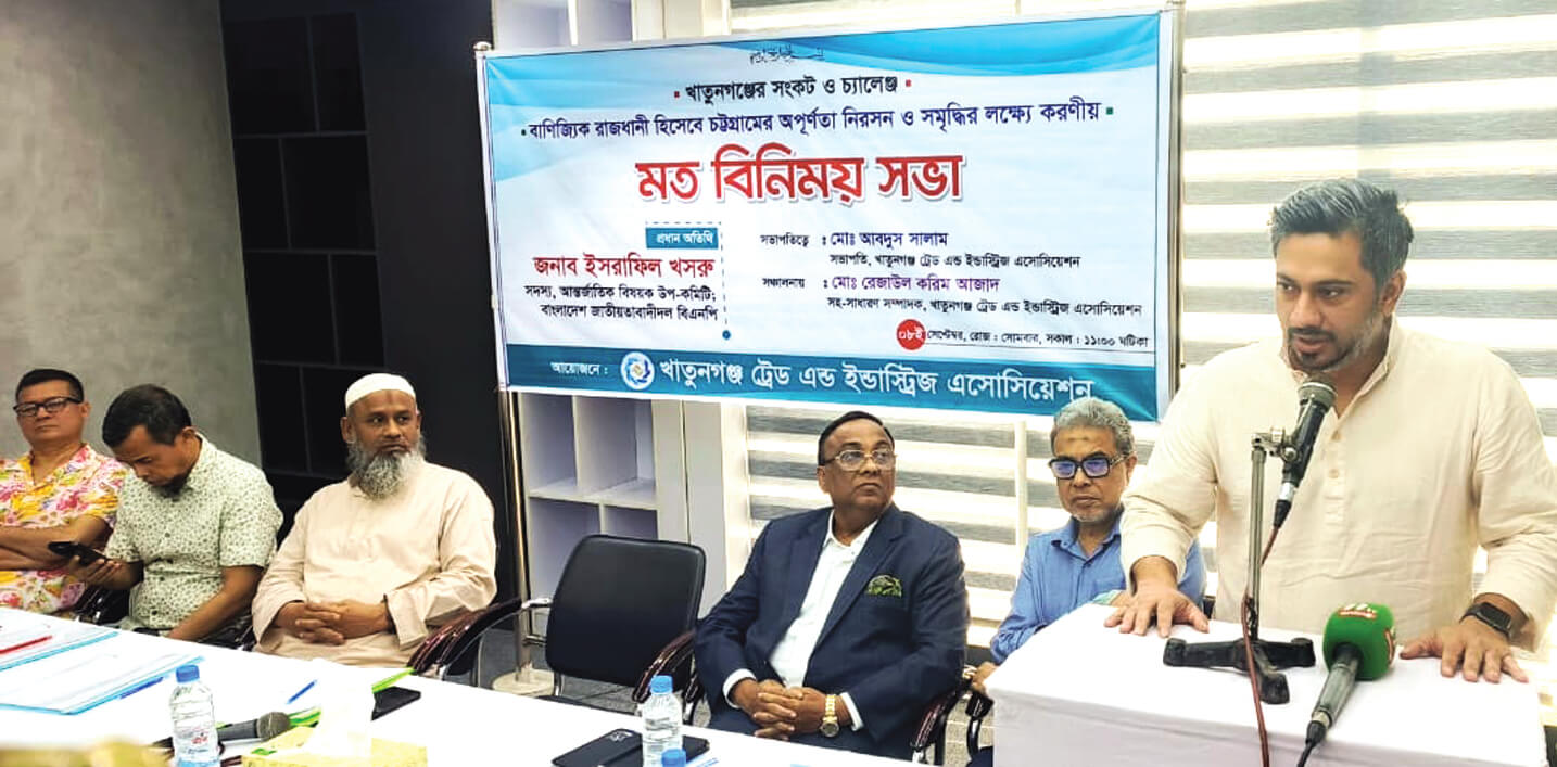 গতকাল সোমবার খাতুনগঞ্জ ট্রেড এন্ড ইন্ডাস্ট্রিজ এসোসিয়েশনের মিলনায়তনে ‘খাতুনগঞ্জের সংকট ও চ্যালেঞ্জ : বাণিজ্যিক রাজধানী হিসেবে চট্টগ্রামের অপূর্ণতা নিরসন ও সমৃদ্ধির লক্ষ্যে করণীয়’ শীর্ষক মতবিনিময় সভায় প্রধান অতিথির বক্তব্যে তিনি এসব কথা বলেন।