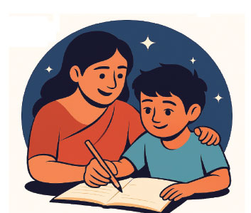 ছোট্ট হাতে কলম, আলোকবর্তিকা শিক্ষিকার হাত, স্বপ্নময় চোখমিলে জন্ম দিচ্ছে এক নতুন দিনের আলো।