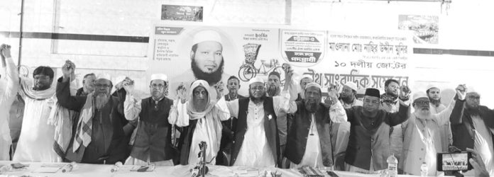 সংবাদ সম্মেলনে ১০ দলীয় জোটের যৌথ সংবাদ সম্মেলনে গতকাল শনিবার পৌরসভার একটি কমিউনিটি সেন্টার আয়োজিত রিকশা প্রতীকে মাওলানা নাছির উদ্দীন মুনির বলেন, দেশের গণতন্ত্র পুনরুদ্ধার, সুশাসন প্রতিষ্ঠা এবং জনগণের ভোটাধিকার নিশ্চিত করাই ১০ দলীয় জোটের মূল লক্ষ্য।