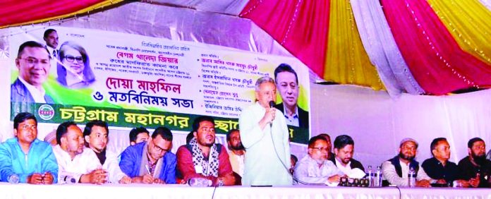 তিনি গত শুক্রবার সন্ধ্যায় নগরীর পোর্ট রিপাবলিক ক্লাবে বিএনপি’র প্রয়াত চেয়ারপার্সন বেগম খালেদা জিয়ার রুহের মাগফিরাত কামনা করে ও আসন্ন ত্রয়োদশ জাতীয় সংসদ নির্বাচনে চট্টগ্রাম–১১ আসনের আওতাধীন স্বেচ্ছাসেবক দল নেতৃবৃন্দের সমন্বয়ে চট্টগ্রাম মহানগর স্বেচ্ছাসেবক দলের উদ্যোগে আয়োজিত দোয়া মাহফিল ও মতবিনিময় সভায় প্রধান অতিথির বক্তব্যে এসব কথা বলেন। নগর স্বেছাসেবক দলের আহ্বায়ক বেলায়েত হোসেন বুলুর সভাপতিত্বে ও সদস্য সচিব ইঞ্জিনিয়ার জমির উদ্দিন নাহিদ এর সঞ্চালনায় অনুষ্ঠানে বিশেষ অতিথি হিসেবে উপস্থিত ছিলেন বিএনপির আন্তর্জাতিক বিষয়ক উপ–কমিটির সদস্য ইসরাফিল খসরু।