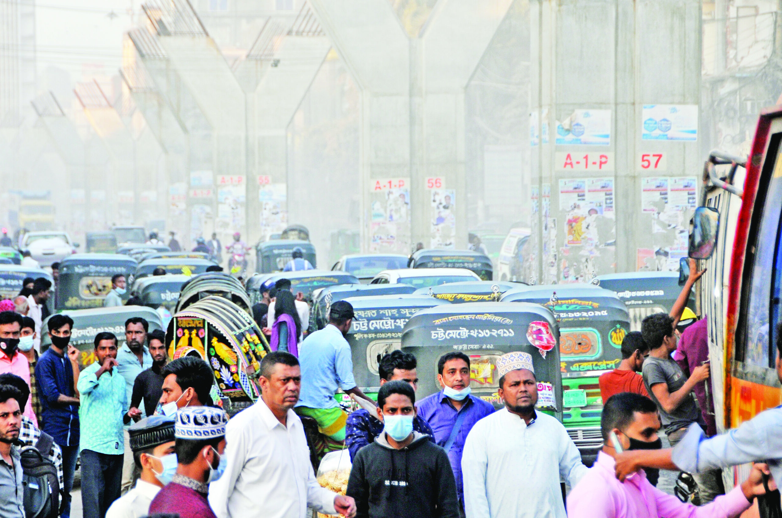 নগরীর আগ্রাবাদ এলাকায় এলিভেটেড এক্সপ্রেসওয়ে নির্মাণের ভোগান্তি অতীতের সকল রেকর্ড ভেঙেছে। এক কিলোমিটার পথ পাড়ি দিতে সময় লাগছে এক ঘণ্টা। অনেকের বিকল্প পথ ব্যবহারে আশেপাশের সব রাস্তা এবং অলিগলিতেও তীব্র যানজটের সৃষ্টি হচ্ছে। সকাল থেকে গভীর রাত অব্দি যানজট লেগে থাকছে আগ্রাবাদসহ সন্নিহিত এলাকায়। শুধু যানজট নয়, পুরো এলাকা মরুভূমির মতো ধুলোবালিতে একাকার হয়ে ওঠে। এলিভেটেড এক্সপ্রেসওয়ের অপরিকল্পিত নির্মাণ কাজ নাগরিক যন্ত্রণার কারণ হয়ে উঠেছে। নির্মাতা প্রতিষ্ঠান ম্যাক্সের পক্ষ থেকে পুলিশকে কথা দিয়েও কথা রাখা হয়নি। আগে বলা হয়েছিল ‘বৃষ্টির জন্য কাজ করা যাচ্ছে না’। এখন বলা হচ্ছে ‘বিপিসি থেকে বিটুমিন না পাওয়ায় কাজ করা সম্ভব হচ্ছে না’। অজুহাতের গ্যাঁড়াকলে পড়ে শহরের প্রধান সড়কে চার লেনে গাড়ি চলাচল নিশ্চিত করার অঙ্গীকার মাঠে মারা পড়ছে।