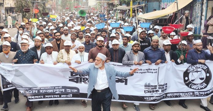চট্টগ্রাম–৯ আসনে জামায়াতে ইসলামী মনোনীত প্রার্থীর সমর্থনে গণমিছিল অনুষ্ঠিত হয়েছে। গতকাল সোমবার বাদে আছর আন্দরকিল্লা শাহী জামে মসজিদের উত্তর গেইট থেকে শুরু হওয়া এই গণমিছিলে প্রধান অতিথি হিসেবে বক্তব্য দেন, জামায়াতে ইসলামী সহকারী সেক্রেটারি জেনারেল মুহাম্মদ শাহজাহান। তিনি বলেন, চট্টগ্রামকে একটি তারুণ্যনির্ভর, জনবান্ধব ও ন্যায়ভিত্তিক আধুনিক নগরী হিসেবে গড়ে তুলতে হলে সৎ, যোগ্য ও দেশপ্রেমিক নেতৃত্বের বিকল্প নেই। আসন্ন গণভোটে ‘হ্যাঁ’ ভোট দিয়ে এবং জাতীয় নির্বাচনে দাঁড়িপাল্লা প্রতীকের প্রার্থী ডা. একেএম ফজলুল হককে বিজয়ী করে জনগণকে সেই পরিবর্তনের পথে এগিয়ে আসতে হবে।