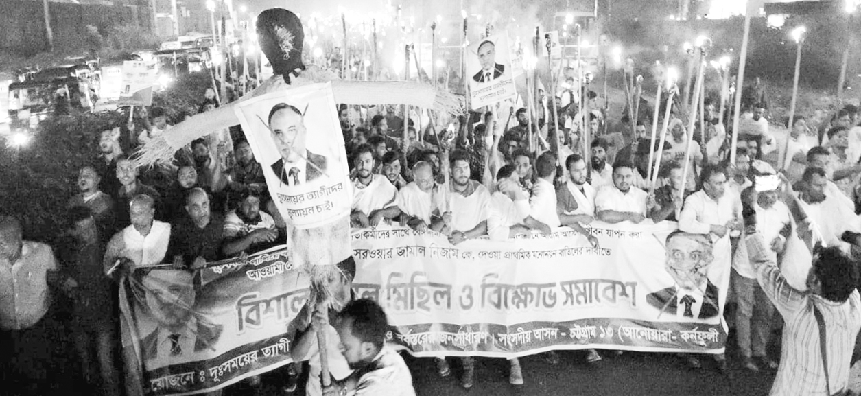 ‘কালো টাকার মনোনয়ন মানি না, মানবো না’–স্লোগান দিয়ে চট্টগ্রাম–১৩ (আনোয়ারা–কর্ণফুলী) আসনে সরওয়ার জামাল নিজামের মনোনয়ন বাতিলের দাবিতে মশাল মিছিল ও বিক্ষোভ করেছে উপজেলা বিএনপির একাংশের নেতাকর্মীরা। গতকাল বৃহস্পতিবার সন্ধ্যা ০৭টার পর উপজেলার টানেল সড়কে এই মশাল মিছিল অনুষ্ঠিত হয়। এসময় বিক্ষোভকারীরা সড়ক বন্ধ করে সরওয়ার জামাল নিজামের ছবি সম্বলিত কুশপুত্তলিকা দাহ করে।