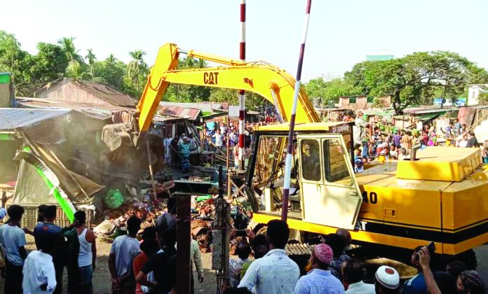 আমবাগান-ঝাউতলায় রেলের অভিযান ১৫০ দোকান ও ঝুপড়ি উচ্ছেদ
