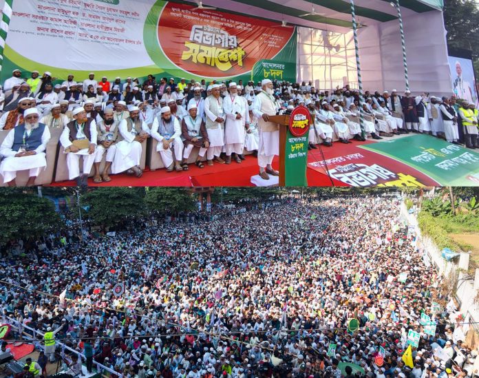 ওইদিন সকাল থেকে নগরীর ঐতিহাসিক লালদীঘির ময়দানে মিছিলে মিছিলে জড়ো হতে থাকেন ৮ দলের নেতাকর্মী ও নগরবাসী। পরে দুপুর পৌনে ২টা থেকে শুরু হয় সমাবেশের মূল কার্যক্রম। এতে সভাপতিত্ব করেন বাংলাদেশ খেলাফত মজলিসের আমির মাওলানা মামুনুল হক। বক্তাদের বক্তব্যের সময় নেতাকর্মীরা পাঁচদফা দাবি নিয়ে স্লোগান দেন।