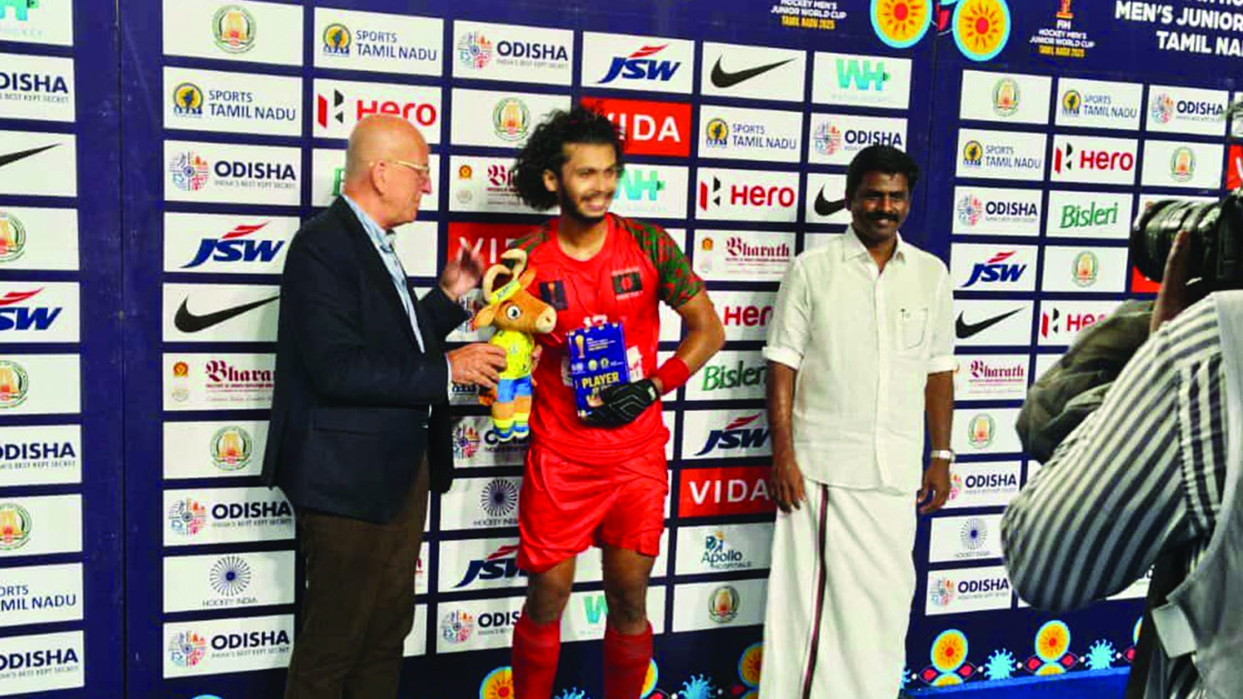 অনূর্ধ্ব–২১ বিশ্বকাপ হকিতে প্রথমবার অংশ নিয়েই বড় বড় প্রতিপক্ষের বিরুদ্ধে তীব্র প্রতিদ্বন্দ্বিতা গড়ে তুলছে বাংলাদেশ। প্রথম ম্যাচে তুমুল প্রতিদ্বন্দ্বিতা করে একসময়ের চ্যাম্পিয়ন অস্ট্রেলিয়ার কাছে ৫–৩ গোলে হেরেছে। গতকাল রোববার অবশ্য গ্রুপের দ্বিতীয় ম্যাচে আরেক শক্তিধর দক্ষিণ কোরিয়ার সঙ্গে পিছিয়ে থেকেও ড্র আদায় করে নিয়েছে। আমিরুল ইসলামের হ্যাটট্রিকে বাংলাদেশ ৩–৩ গোলে ড্র করে পয়েন্ট ভাগাভাগি করেছে। ভারতের চেন্নাইয়ে অনুষ্ঠিত এ খেলায় দক্ষিণ কোরিয়া বিরতির আগে ৩ গোল করে। ৮ মিনিটে প্রথম এগিয়ে যায় তারা। পেনাল্টি কর্নার থেকে লি মিনহোক পোস্টে জড়িয়ে দেন বল। ১৩ মিনিটে ব্যবধান দ্বিগুণও হয়। সন সিহানগান পেনাল্টি কর্নার থেকে কোরিয়াকে আরও এগিয়ে নেন। ৪ মিনিট পর লি মিনহিয়োক আবারও পেনাল্টি কর্নার থেকে নিজের দ্বিতীয় ও দলের হয়ে তৃতীয় গোল করেন। বিরতির পর বাংলাদেশ ঘুরে দাঁড়ানোর চেষ্টা করে দারুন সফল হয়। আগের ম্যাচে হ্যাটট্রিক করা আমিরুল ইসলাম এক গোল শোধ দেন। ৩৬ মিনিটে পেনাল্টি কর্নার থেকে আমিরুল ইসলাম স্কোর ৩–১ করেন। ৪৬ মিনিটে বাংলাদেশ দ্বিতীয় গোল শোধ দেয়। এবারও গোলদাতা আমিরুল। পেনাল্টি কর্নার থেকে ঝাঁকড়া চুলের অধিকারী এই খেলোয়াড় দারুণ গোল করে স্কোর ৩–২ করেন। ৫৬ মিনিটে বাংলাদেশ ম্যাচে সমতা ফেরায়। আমিরুল ইসলাম পেনাল্টি কর্নার থেকে গোল করে সমতা আনার পাশাপাশি হ্যাটট্রিকও করেন। প্রথম ম্যাচেও হ্যাট্রিক করেছিলেন আমিরুল। গতকাল কোরিয়ার বিপক্ষে বাংলাদেশের জন্য পয়েন্ট এনে দিয়ে তিনি ম্যাচসেরাও হয়েছেন। দক্ষিণ কোরিয়াকে আটকে দিয়ে বাংলাদেশ বিশ্বকাপে প্রথম পয়েন্টের দেখা পেয়েছে। বাংলাদেশ পরের ম্যাচ খেলবে আরেক চ্যাম্পিয়ন ফ্রান্সের বিপক্ষে।