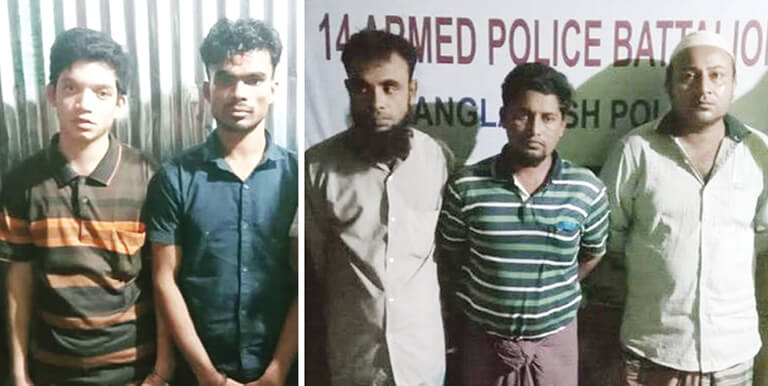 গ্রেপ্তারকৃতরা হচ্ছেন উখিয়ার কুতুপালং ক্যাম্পের মৃত সুলতান আহমদের ছেলে মো. খালেদ হোসেন (৩৩), ১-ইস্ট লম্বাশিয়া ক্যাম্পের মৃত আমির হোসেনের ছেলে মাস্টার সৈয়দ আমিন (৩৮), একই ক্যাম্পের আবুল খায়েরের ছেলে মো. শাকের (৩৫), নুর বসরের ছেলে মোহাম্মদ কলিম (১৮) ও মৃত মো. রশিদের ছেলে মো. ইলিয়াস (২২)। এপিবিএন অধিনায়ক এসপি নাইমুল হক জানান, এসব দুর্বৃত্ত দীর্ঘদিন ধরে বিভিন্ন রোহিঙ্গা ক্যাম্পে আরসার নাম ব্যবহার করে চাঁদাবাজি, অপহরণসহ নানা অপরাধ সংঘটিত করে আসছিল। এমনকি দায়িত্বরত পুলিশের ওপরও হামলা চালানোর অভিযোগ রয়েছে তাদের বিরুদ্ধে। আইনগত ও প্রয়োজনীয় ব্যবস্থা গ্রহণের জন্য তাদেরকে উখিয়া থানায় হস্তান্তর করা হয়েছে।