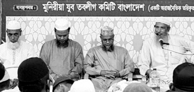 মুনিরীয়া যুব তবলীগ কমিটি বাংলাদেশ উদ্যোগে বায়েজিদস্থ আরেফিন নগরে মাসব্যাপী পবিত্র ঈদে মিলাদুন্নবী (দঃ) পালন উপলক্ষে গতকাল রোববার বাদে মাগরিব মসজিদে গাউছুল আজম মুনিরী (রা.) প্রাঙ্গণে ১০তম এশায়াত মাহফিল অনুষ্ঠিত হয়। মুহাম্মদ গিয়াস উদ্দিনের সভাপতিত্বে মাহফিলে বক্তব্য রাখেন মাওলানা মুহাম্মদ শফিউল আলম ও মাওলানা মুহাম্মদ ইলিয়াস নুরী।