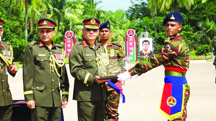 সেনাবাহিনী প্রধান কুচকাওয়াজ পরিদর্শন ও অভিবাদন গ্রহণ অনুষ্ঠানে জিওসিকে স্বাগত জানান আর্টিলারি সেন্টার ও স্কুলের কমান্ড্যান্ট ব্রিগেডিয়ার জেনারেল আ ফ মোহাম্মদ আতিকুর রহমান। অনুষ্ঠানে চট্টগ্রাম অঞ্চলের উর্ধ্বতন সামরিক কর্মকর্তাসহ আর্টিলারি সেন্টার ও স্কুলের সকল অফিসার, জুনিয়র কমিশন্ড অফিসার, অন্যান্য পদবীর সৈনিকবৃন্দ, নবীন সৈনিকদের পরিবারবর্গ এবং অন্যান্য অতিথিবৃন্দ উপস্থিত ছিলেন। এ সময় মেজর জেনারেল মীর মুশফিকুর রহমান রেজিমেন্ট অব আর্টিলারির গৌরবোজ্জ্বল ঐতিহ্য এবং দেশমাতৃকার সেবায় রেজিমেন্ট অব আর্টিলারির অবদানের কথা উল্লেখ করেন। তিনি আধুনিক ও যুগোপযোগী প্রশিক্ষণের মাধ্যমে দক্ষতা অর্জন করে একবিংশ শতাব্দীর কঠিন চ্যালেঞ্জ মোকাবেলায় প্রস্তুত থাকার জন্য রেজিমেন্ট অব আর্টিলারি এবং আর্মি এয়ার ডিফেন্স কোরের নবীন সৈনিকদের প্রতি আহ্বান জানান। আর্টিলারি রেজিমেন্টের ৯৪তম রিক্রুট ব্যাচের সব বিষয়ে সেরা সৈনিক নির্বাচিত হন মোহাম্মদ মুছাব্বির হোসেন, শরীর চর্চায় সেরা নবীন সৈনিক মোহাম্মদ সাব্বির খন্দকার, কুচকাওয়াজ সেরা কায়েছুর রহমান রিয়াদ এবং অস্ত্র প্রশিক্ষণে সেরা হয়েছেন মোহাম্মদ আতিকুর রহমান। প্রধান অতিথি প্রশিক্ষণের বিভিন্ন ক্ষেত্রে সাফল্য অর্জনকারী নবীন সৈনিকদের মধ্যে পুরস্কার বিতরণ করেন।