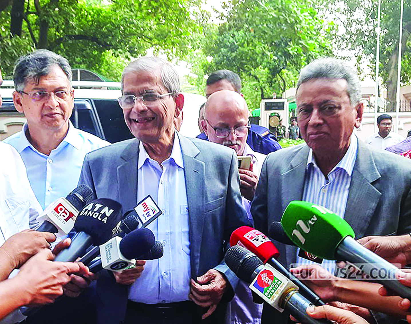 সাংবাদিকদের প্রশ্নে মির্জা ফখরুল বলেন, রাজনৈতিক দলগুলোর সঙ্গে আলোচনা হবে পর্যায়ক্রমে। নির্বাচনের কোনো সম্ভাব্য তারিখ নিয়ে আলোচনা হয়েছে কি না, জানতে চাইলে তিনি বলেন, আমরা কোনো তারিখ নিয়ে আলোচনা করিনি। আমরা কোনো তারিখ বলব না। এটা উনারা (অন্তর্র্বর্তী সরকার) বলবেন।