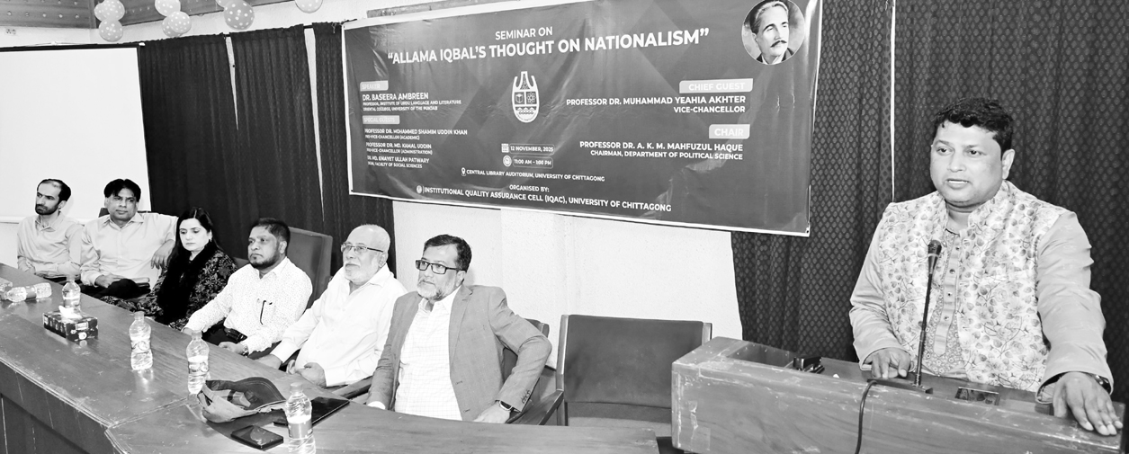 চট্টগ্রাম বিশ্ববিদ্যালয়ের ইনস্টিটিউশনাল কোয়ালিটি এস্যুরেন্স সেলের (আইকিউএসি) উদ্যোগে আল্লামা ইকবালের জাতীয়তাবাদ চিন্তা শীর্ষক সেমিনার অনুষ্ঠিত হয়েছে। গতকাল বুধবার বিশ্ববিদ্যালয়ের কেন্দ্রীয় গ্রন্থাগার মিলনায়তনে এ সেমিনার অনুষ্ঠিত হয়।