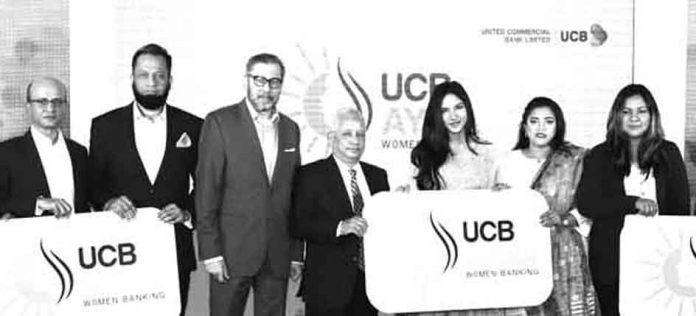 কর্মকর্তাবৃন্দ। অনুষ্ঠানে প্রধান অতিথি বলেন, ইউসিবি আয়মা নারী গ্রাহকবৃন্দের জন্য সর্বাধুনিক, নিরাপদ ও পরিপূর্ণ ইসলামিক ব্যাংকিং সেবা প্রদানে সমর্থ হবে। বহুমুখী পণ্য ও সেবার সমন্বয়ে ইউনাইটেড কমার্শিয়াল ব্যাংকিং লিমিটেড দেশের শীর্ষস্থানীয় বেসরকারী বাণিজ্যিক ব্যাংক। প্রেস বিজ্ঞপ্তি।