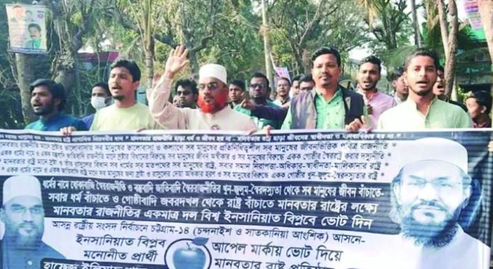 গত ৫ ফেব্রুয়ারি চন্দনাইশ থানায় নির্বাচনী প্রচারণায় মানবতার রাজনীতির প্রবর্তক আল্লামা ইমাম হায়াতের দিকনির্দেশনায় আসন্ন ত্রয়োদশ রাষ্ট্রীয় সংসদ নির্বাচনে চট্টগ্রাম–১৪ আসনে ইনসানিয়াত বিপ্লব বাংলাদেশের মনোনীত প্রার্থী এইচ এম ইলিয়াস উপস্থিত ছিলেন। এতে আরোও উপস্থিত ছিলেন চন্দনাইশ থানা শাখার প্রতিনিধি ভাইবোন। এতে বক্তারা বলেন, মানবতার রাজনীতি ও মানবতার রাষ্ট্র না বুঝা সত্য–মিথ্যা, ন্যায় অন্যায়, ধর্ম–অধর্ম, মানবতা–পাশবতা, অধিকার– রুদ্ধতা, স্বাধীনতা–পরাধীনতার দ্বন্দ্বের ধারা ও মুক্তির ধারা কিছুই না বুঝা। মানবতার রাজনীতি ছাড়া মানবতার রাষ্ট্র ও মানবতার দুনিয়া হয় না। রাষ্ট্র সবার সব মানুষের, রাষ্ট্র একক গোষ্ঠী বা একক ধর্মের নয়। স্থানীয় জনগণের অধিকার রক্ষায় আপেল প্রতীকে ভোট দেওয়ার আহবান জানান তারা। প্রেস বিজ্ঞপ্তি।
