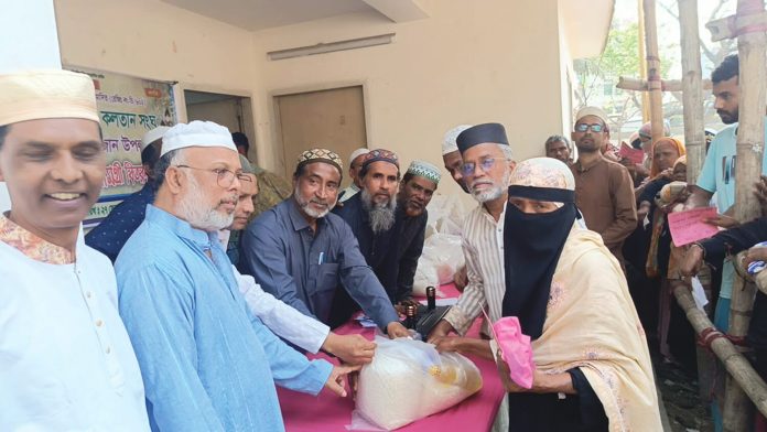 মধ্যম হালিশহর কলতান সংঘ : পবিত্র মাহে রমজান উপলক্ষে প্রতি বছরের ন্যায় এবারও নগরীর বন্দর থানাধীন সামাজিক সংগঠন মধ্যম হালিশহর কলতান সংঘের উদ্যোগে দিনব্যাপী দুস্থ ও নিম্ন আয়ের প্রায় ৪৫০ পরিবারের মাঝে সেহেরি ও ইফতার সামগ্রী সংঘের অফিস প্রাঙ্গণে বিতরণ করা হয়। দোয়া মাহফিলের মধ্যদিয়ে কর্মসূচির উদ্বোধন করা হয়। দোয়া মাহফিল পরিচালনা করেন ১ নম্বর সাইট নতুন জামে মসজিদের খতিব, হাটহাজারী আনোয়ারুল উলুম নোমানীয়া ফাজিল মাদ্রাসার সহকারী অধ্যাপক মৌলানা বেলাল উদ্দিন নোমানী। এ সময় উপস্থিত ছিলেন সংঘের উপদেষ্টা পরিষদের চেয়ারম্যান সরওয়ার আলম, সদস্য মো. জয়নাল আবেদীন, সংঘের সভাপতি হাজী মো. নোমান,সিনিয়র সহ সভাপতি হাজী মো. শাহীন, সাধারণ সম্পাদক মো. কামাল উদ্দীন, সহ সভাপতি মো. আরিফ, সালাহ উদ্দীন, মো. হোসেন,সাহাব উদ্দীন, মো: আবুল কালাম, হাজী মো. আজিজ উল্যাহ, রেজাউল হক রাজু,জামাল উদ্দীন প্রমুখ।