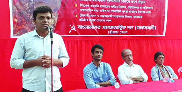 বাসদ (মার্কসবাদী), চট্টগ্রাম জেলা শাখার উদ্যোগে মহান নভেম্বর বিপ্লবের ১০৫ তম ও পার্টির ৪২তম প্রতিষ্ঠাবার্ষিকীর জনসভা গতকাল চট্টগ্রামের পুরাতন রেলস্টেশন চত্ত্বরে অনুষ্ঠিত হয়। সভায় বক্তব্য রাখেন ছিলেন বাসদ কেন্দ্রীয় নির্বাহী ফোরামের সমন্বয়ক কমরেড মাসুদ রানা। আরও বক্তব্য রাখেন সভার সভাপতি বাসদ চট্টগ্রাম জেলা কমিটির আহ্বায়ক কমরেড মানস নন্দী, চট্টগ্রাম জেলা কমিটির সদস্য আসমা আক্তার। সভা পরিচালনা করেন চট্টগ্রাম জেলা শাখার সদস্য সচিব শফিউদ্দিন কবির আবিদ। সভায় বক্তারা বলেন, দেশ এক ক্রান্তিলগ্ন অতিক্রম করছে। গত ১৪ বছর ধরে ক্ষমতাসীন আওয়ামী লীগ দেশে ফ্যাসিবাদী শাসন প্রতিষ্ঠা করেছে। ২০১৪ সালে এক তরফা নির্বাচনের পর ২০১৮ সালে নিয়ন্ত্রিত নির্বাচনের রাতের ভোটের মাধ্যমে ক্ষমতা কুক্ষিগত করেছে। এবারও আওয়ামী লীগ সরকার অনুগত নির্বাচন কমিশন ও ইভিএম ব্যবহার করে ক্ষমতা ধরে রাখার পাঁয়তারা করছে। বাস্তবে ভোটাধিকার ও গণতান্ত্রিক অধিকার সমূহ পদদলিত করে ক্ষমতাসীন আওয়ামী লীগ দেশে গণতান্ত্রিক ব্যবস্থার কবর রচনা করেছে। উন্নয়নের মিথ্যে ফানুস উড়িয়ে জনগণকে বিভ্রান্ত করে শাসন দীর্ঘায়িত করতে চাইছে সরকার। সরকার একের পর এক মেগা প্রকল্প হাতে নিয়ে জনগণের চোখে ধুলো দেয়ার চেষ্টা করছে। বাস্তবে মেগা প্রকল্পগুলো মেগা লুটপাটের প্রকল্প। জনগণের টাকা লুটপাট করে মুষ্টিমেয় লোকের বেড়েছে সম্পদ। সভা শেষে একটি লাল পতাকা মিছিল নগরীর গুরুত্বপূর্ণ সড়ক প্রদক্ষিণ করে। প্রেস বিজ্ঞপ্তি।