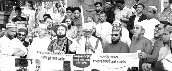 ইসলামিক ফ্রন্ট বাংলাদেশের মহাসচিব অধ্যক্ষ আল্লামা জয়নুল আবেদীন জুবাইর বলেছেন– নির্বাচন যতই ঘনিয়ে আসছে, ততই রাজনৈতিক উত্থাপ বৃদ্ধি পাচ্ছে। জনগণ নির্বাচন কমিশনকে ঠুটোঁ জগন্নাথের ভূমিকায় দেখতে চায় না বলে মন্তব্য করেন। অধ্যক্ষ আল্লামা জুবাইর ১২ ফেব্রুয়ারী জাতীয় সংসদ নির্বাচনে চট্টগ্রাম–৮ মাওলানা ছৈয়দ হাসান আজহারীকে মোমবাতি প্রতীকে, চট্টগ্রাম–৯ মাওলানা ওয়াহেদ মুরাদ, চট্টগ্রাম–১০, মাওলানা লিয়াকত আলী, চট্টগ্রাম–১১, হাফেজ মাওলানা আবু তাহেরকে চেয়ার প্রতীকে এবং চট্টগ্রাম বিভিন্ন আসনে চেয়ার, মোমবাতি ও একতারা প্রতীকে বৃহত্তম সুন্নী জোট মনোনীত প্রার্থীদেরকে ভোট দেয়ার জন্য সকলের প্রতি উদাত্ত আহবান জানান। চট্টগ্রাম–৮ আসনের সুন্নীজোট প্রার্থী মাওলানা ছৈয়দ হাসান আজহারি বলেছেন– দুর্নীতি, সন্ত্রাস ও মাদক গোটা সমাজকে গিলে খেয়েছে। চট্টগ্রাম –৮ আসনকে একটি সন্ত্রাস– মাদকমুক্ত এবং সুস্থ, সুন্দর, ও শান্তির জনপদ হিসেবে গড়ে তোলার অঙ্গিকার ব্যক্ত করে তাঁকে মোমবাতি প্রতীকে ভোট দেয়ার জন্য উদাত্ত আহবান জানান। ইসলামিক ফ্রন্ট বাংলাদেশ চট্টগ্রাম মহানগরের চান্দগাঁও থানা শাখার উদ্যোগে বৃহস্পতিবার বিকেল ৪টায় কাপ্তাই রাস্তার মাথায় চট্টগ্রাম–৮ আসনে সুন্নীজোট প্রার্থী মাওলানা ছৈয়দ হাসান আজহারির সমর্থনে অনুষ্ঠিত এক পথসভায় বক্তারা উপরোক্ত মন্তব্য করেন। মাওলানা মোহাম্মদ মোরশেদুল ইসলামের সভাপতিত্বে ও শহীদুল ইসলামের সঞ্চালনায় পথসভায় প্রধান অতিথি ছিলেন ইসলামিক ফ্রন্ট বাংলাদেশের মহাসচিব অধ্যক্ষ আল্লামা জয়নুল আবেদীন জুবাইর। উদ্বোধক ছিলেন ইসলামিক ফ্রন্ট বাংলাদেশের ভাইস–চেয়ারম্যান মোহাম্মদ রফিক কোম্পানি। বিশেষ অতিথি ছিলেন কেন্দ্রীয় দপ্তর সম্পাদক মাওলানা এ এম মঈনউদ্দীন চৌধুরী হালিম, কেন্দ্রীয় অর্থ সচিব এ.এস.এম কাউছার, কেন্দ্রীয় যুব বিষয়ক সচিব এম রাশেদুল ইসলাম রাশেদ, বাংলাদেশ ইসলামী ফ্রন্ট চান্দগাঁও থানার সভাপতি কাজী মুহাম্মদ মহিউদ্দিন। অন্যান্যদের মধ্যে উপস্থিত ছিলেন শেখ মুহাম্মদ নিজাম উদ্দিন, এম.এন. আবছার, শহীদুল ইসলাম, নূর মিয়া, সেলিম উদ্দিন, সরোয়ার আলম, আবু আব্বাস, এয়াকুব আলী, কামরুল হাসান শাকিল, জুয়েল, শাহেদ, আল আমিন, কামরুল প্রমুখ। পথসভা শেষে নগরীতের গুরুত্বপূর্ণ সড়কে ব্যাপক গণসংযোগ করা হয়। প্রেস বিজ্ঞপ্তি।