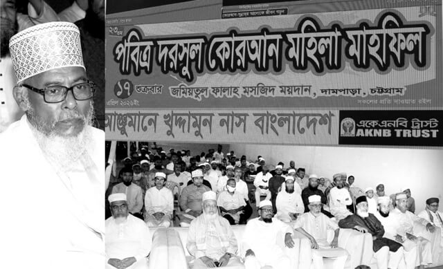 আঞ্জুমানে খুদ্দামুন নাস বাংলাদেশের উদ্যোগে গতকাল জুমাবার বিকেল ৩ টায় চট্টগ্রাম জমিয়তুল ফালাহ মসজিদ ময়দানে ২ দিনব্যাপী ২৩ তম ঐতিহাসিক পবিত্র দরসুল কোরআন মাহফিলের প্রথম দিনের মহিলা মাহফিলে দরস পেশ করতে গিয়ে বক্তারা উপরোক্ত মন্তব্য করেন। সংস্থার চেয়ারম্যান আল্লামা কাজী জসীম উদ্দীনের সভাপতিত্বে অনুষ্ঠিত মহিলা মাহফিলে প্রধান মুফাস্িসর হিসেবে উপস্থিত ছিলেন– মুফাসসিরে কোরআন অধ্যক্ষ আল্লামা জয়নুল আবেদীন জুবাইর। বিশেষ অতিথি হিসেবে উপস্থিত ছিলেন আহলে সুন্নাত ওয়াল জামাআতের কো–চেয়ারম্যান অধ্যক্ষ আল্লামা এস এম ফরিদ উদ্দীন। শুভেচ্ছা বক্তব্য রাখেন– পবিত্র দরসুল কোরআন মাহফিল প্রস্তুতি কমিটির আহবায়ক ছৈয়দ মোহাম্মদ হামেদ হোসাইন, এইচ এম মুজিবুল হক শাকুর। দরস পেশ করেন– অধ্যক্ষ আল্লামা হাসান রেজা আলকাদেরী, মুফতি মাওলানা জানে আলম নেজামী, শায়খ মাওলানা জাহিদ কাদেরী, অধ্যাপক কাজী মাওলানা শফিউল আজম, মাওলানা মহিউদ্দিন তাহেরীর সঞ্চালনায় অনুষ্ঠিত মাহফিলে অন্যান্যদের মধ্যে উপস্থিত ছিলেন–এস এম আব্দুল করিম তারেক, উপাধ্যক্ষ আল্লামা জাকের আহমদ সিদ্দিকী, মাওলানা স ম শহিদুল হক ফারুকী, অধ্যক্ষ ছৈয়দ মাওলানা আবু ছালেহ, মাওলানা মুহাম্মদ ওয়াহেদ মুরাদ, মাওলানা এ এম মঈনউদ্দীন চৌধুরী হালিম, মাওলানা রফিকুল ইসলাম, কফিল উদ্দীন রানা, এম আহমদ রেজা প্রমুখ। উল্লেখ্য, আজ শনিবার বিকেল ৩টায় ঐতিহাসিক পবিত্র দরসুল কোরআন মাহফিল অনুষ্ঠিত হবে। প্রেস বিজ্ঞপ্তি।