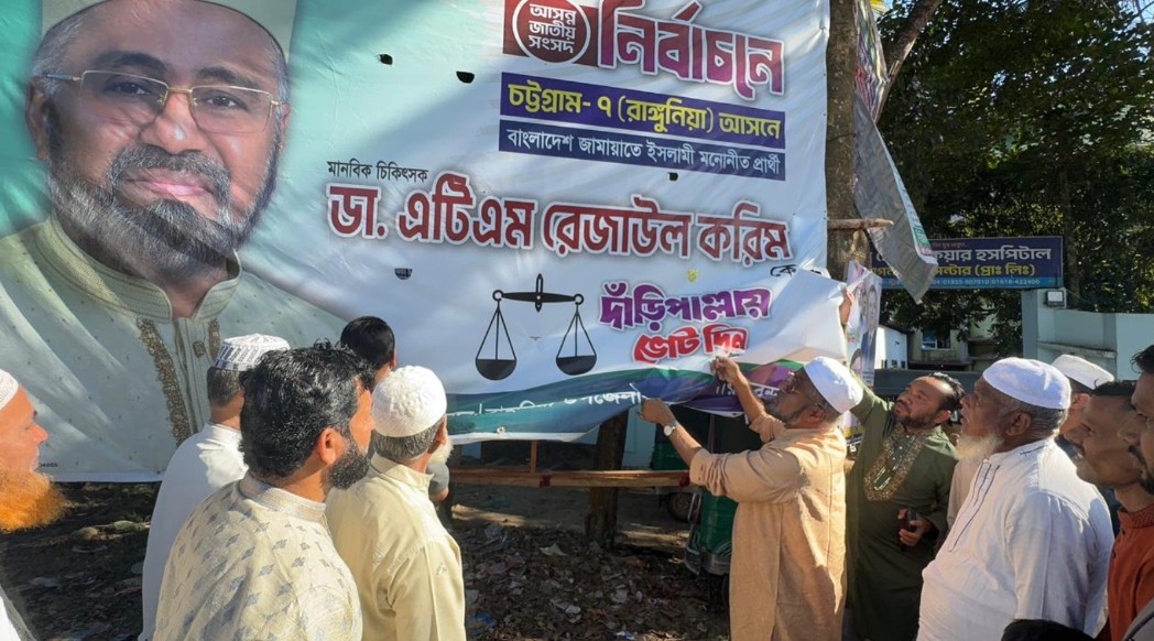ইসি’র নির্দেশ মানতে নিজেই ব্যানার সরালেন রাঙ্গুনিয়ার প্রার্থী ডাঃ রেজাউল করিম