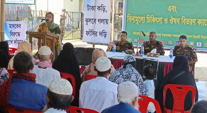 কক্সবাজারের ঈদগাঁও পাবলিক লাইব্রেরিতে সেনাবাহিনীর উদ্যোগে মাদকবিরোধী সচেতনতামূলক কর্মসূচি ও বিনামূল্যে চিকিৎসা সেবা অনুষ্ঠিত হয়েছে। রোহিঙ্গা ক্যাম্পসহ পুরো কক্সবাজার এলাকার মাদক নিয়ন্ত্রণ কার্যক্রমে গঠিত টাস্কফোর্সের সার্বিক তত্ত্বাবধানে আয়োজিত এ ক্যাম্পেইনে স্থানীয় গণ্যমান্য ব্যক্তি, শিক্ষক, সুশীল সমাজের প্রতিনিধি এবং চিকিৎসাসেবা নিতে আসা অসহায় মানুষদের ব্যাপক অংশগ্রহণ ছিল।