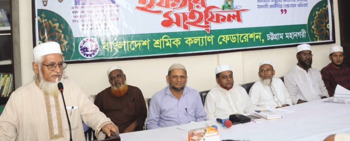 বাংলাদেশ শ্রমিক কল্যাণ ফেডারেশন চট্টগ্রাম মহানগরের উদ্যোগে থানা ও সেক্টর দায়িত্বশীলদের সম্মানে আয়োজিত ইফতার মাহফিলে প্রধান অতিথির বক্তব্যে তিনি এসব কথা বলেন। গত ১১ মার্চ নগরীর জামালখানস্থ নগর কার্যালয়ে অনুষ্ঠানে সভাপতিত্ব করেন ফেডারেশনের কেন্দ্রীয় সহ–সাধারণ সম্পাদক ও মহানগর সভাপতি এস এম লুৎফর রহমান ও সঞ্চালনা করেন নগর সহ–সভাপতি মকবুল আহম্মেদ ভূঁইয়া। প্রেস বিজ্ঞপ্তি।