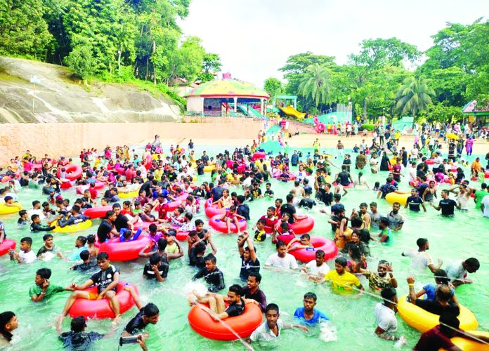 ঈদের ছুটিতে বরাবরের মতো এবারও বিনোদনপ্রেমীদের আগ্রহের শীর্ষে চট্টগ্রামের ফয়’সলেক কনকর্ড অ্যামিউজমেন্ট পার্ক। লেকের শেষ প্রান্তে আছে পানির রাজ্যে বিচরণের রোমাঞ্চকর স্থান ‘সি ওয়ার্ল্ড’ বিকেলে হাজারো মানুষের পদচারণায় মুখর হয়ে উঠেছে।