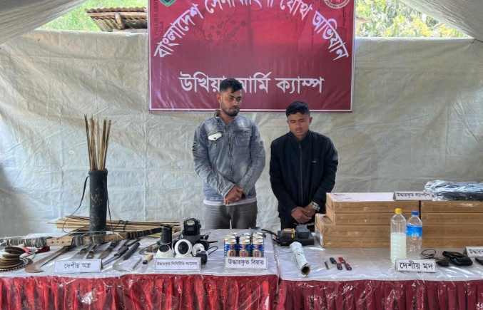 এসময় তাদের কাছ থেকে বিপুল পরিমাণ দা, চাপাতি, ওয়ার কাটার, পকেট নাইফ, মোবাইল ফোন, ল্যাপটপ, ইয়াবা সেবনের বিভিন্ন সরঞ্জামাদি, বাংলা মদ উদ্ধার করতে সক্ষম হয়। আটককৃতরা হলেন কক্সবাজারের উখিয়া উপজেলার পালংখালী ইউনিয়নের নলবুনিয়া গ্রামের বাসিন্দা মৃত সিরাজুল ইসলাম ছেলে মিজান (৩৫) ও মনজুর আলমের ছেলে রাকিব (১৮)।