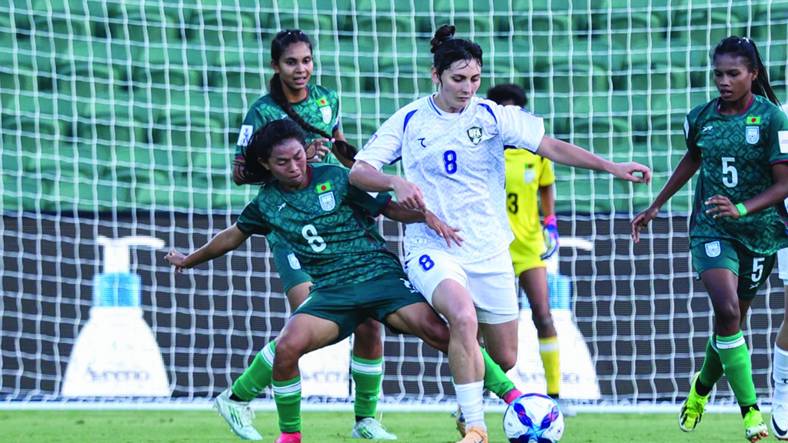 চার মিনিট পর দিয়োরাখোনে ক্রসে দিলদোরা নজিমোভা প্লেসিং শটে ব্যবধান আরও বাড়ান। বাংলাদেশের ঘুরে দাঁড়ানোর পথটা কঠিন হয়ে যায় আরও। ৭০তম মিনিটে বাংলাদেশের জালে আসালখোন আমিনজনোভা বল জড়ালেও ভিএআর চেকে হয়নি গোল। ডান দিকে উড়ে আসা বল ক্লিয়ার করতে বক্সের বাইরে চলে গিয়েছিলেন মিলি, বল আলতো টোকায় বক্সের ভেতরে এনে ধরেছিলেন তিনি, ওই সময়ই আমিনজনোভা শটে জালে বল জড়িয়ে দেন। ভিএআর চেকে দেখা যায়, বল মিলির গ্লাভসের নিচে থাকা অবস্থায় শট করেছিলেন আমিনজনোভা। শেষ দিকে উড়ে আসা বল বাংলাদেশের এক ডিফেন্ডার হেডে ক্লিয়ার করতে পারেননি। বল গিয়ে পড়ে নিলুফারের সামনে। প্রথম প্রচেষ্টায় নিয়ন্ত্রণে নিয়ে নিখুঁত শটে ব্যবধান আরও বাড়ান এই ফরোয়ার্ড।