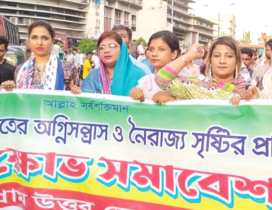 উত্তর জেলা যুব মহিলা লীগের উদ্যোগে ৩০ জুলাই বিএনপি জামায়াতের অগ্নি সন্ত্রাস, নৈরাজ্যে ও সন্ত্রাসী হামলার প্রতিবাদে এক বিক্ষোভ মিছিল ও সমাবেশ অ্যাডভোকেট জুবাঈদা ছরওয়ার চৌধুরী নিপার সভাপতিত্বে অনুষ্ঠিত হয়। এতে অন্যান্যের মধ্যে বক্তব্য রাখেন উত্তর জেলা যুব মহিলা লীগের সদস্য পারভীন আকতার, মীরসরাই যুব মহিলা লীগের আহবায়ক বিবি কুলসুম চম্পা, সীতাকুণ্ড যুব মহিলা লীগের আহবায়ক জয়নব বিবি জলি, অ্যাডভোকেট রাহেলা চৌধুরী, সাধারণ সম্পাদক সুমায়তুন নূর বৃষ্টি, মিনা পারভিন হোসেন, অ্যাডভোকেট ফাতেমার নার্গিস হেলনা, সদস্য ইয়াসমিন আকতার, ফরিদা ইয়াসমিন প্রমুখ। প্রেস বিজ্ঞপ্তি।