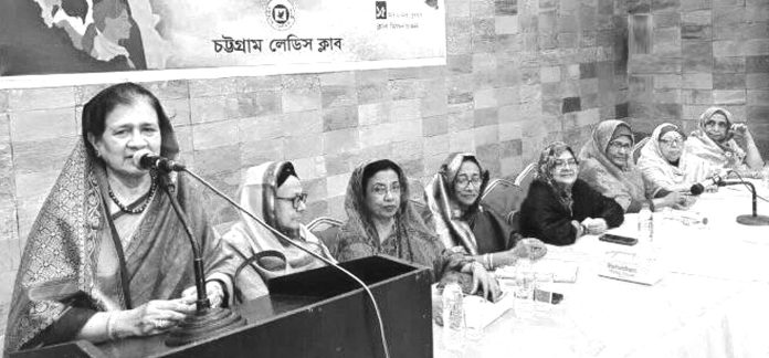চট্টগ্রাম লেডিস ক্লাবের উদ্যোগে গত ১৫ মার্চ আলোচনা সভায় আলোচকরা একথা বলেন। এতে সভাপতিত্ব করেন ক্লাব সভানেত্রী খালেদা আউয়াল। ক্লাব সম্পাদিকা বোরহানা কবিরের সঞ্চালনায় শুরুতেই পবিত্র কোরআন থেকে তেলোয়াত করেন রিজিয়া আকবর খন্দকার। আলোচনায় অংশ নেন ক্লাব প্রাক্তন সভানেত্রী জিনাত আজম, সহ সভানেত্রী পারভিন চৌধুরী, গুলশানা আলী, রুহী মোস্তফা, হাজেরা মুন্নী, রিজওয়ানা সালেহ, ড. জয়নাব বেগম, অধ্যাপক আয়েশা পারভিন চৌধুরী। স্বরচিত কবিতা পাঠ করেন ফরিদা ফরহাদ, মর্জিনা আখতার, আলেয়া চৌধুরী। গান পরিবেশন করেন ডা. হাফসা সালেহ। ধন্যবাদ জ্ঞাপন করেন ক্লাব সহসভানেত্রী পারভিন জালাল। প্রেস বিজ্ঞপ্তি।