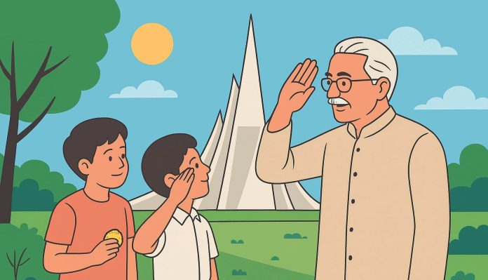 দাদু আর কতদূর? উফ্ আমার যে আর তর সইছে না। রিকশায় দাদুর পাশে বসে কথাগুলো বলল স্বাধীন। দাদু বলল, এই তো প্রায় চলে এসেছি। একটু ধৈর্য ধরো দাদুভাই। এরপর ওরা দুজন জুতা খুলে খালি পায়ে ধীরে ধীরে হাঁটতে লাগলো। দাদু হাত উপরে তুলে স্যালুট জানালো। দাদুকে দেখে স্বাধীনও স্যালুট জানালো। দাদু দেখে খুশি হলো। ওরা দুজন ফুল দিয়ে শ্রদ্ধা জানালো। হঠাৎ দাদু উপরের দিকে তাকিয়ে বললেন –