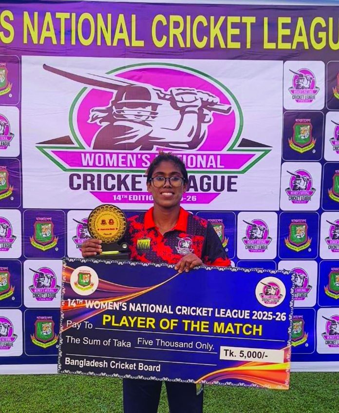 বাংলাদেশ ক্রিকেট বোর্ড আয়োজিত নারী টি২০ জাতীয় ক্রিকেট লিগে টানা চতুর্থ জয় পেয়েছে চট্টগ্রাম বিভাগ। গতকাল বুধবার সাভারের বিকেএসপি মাঠে অনুষ্ঠিত খেলায় চট্টগ্রাম বিভাগ ২৫ রানে রংপুর বিভাগকে পরাজিত করে। টসে জিতে চট্টগ্রাম প্রথমে ব্যাট করতে নামে। নির্ধারিত ২০ ওভার খেলে তারা মাত্র ৩ উইকেট হারিয়ে ১২৭ রান সংগ্রহ করে। দুই উদ্বোধনী ব্যাটার ৪৬ রান জমা করে বিচ্ছিন্ন হন। রুবাইয়া হায়দার ঝিলিক ৩৩ বল খেলে ৩৮ রানের ইনিংস খেলেন। তিনি ৬টি চার এবং ১টি ছক্কা হাঁকান। অপর ওপেনার একা মল্লিক ৩১ বল খেলে ২১ রান সংগ্রহ করেন। তাজ নেহার ৩৮ বল খেলে ৩৮ রান করেন। যার মধ্যে ছিল ১টি চার এবং ১টি ছক্কার মার। অধিনায়ক ফাহিমা খাতুন ২১ বলে ২৫ রান করে অপরাজিত থাকেন। তিনি ২টি চার মারেন। অতিরিক্ত থেকে আসে ৫ রান। রংপুর বিভাগের হয়ে ১টি করে উইকেট নেন লতা মন্ডল এবং লাকি খাতুন। জবাব দিতে নেমে রংপুর বিভাগ ২০ ওভার খেলে ৯ উইকেটে ১০২ রান করতে সমর্থ হয়। দলীয় ১০ রানে চট্টগ্রাম সফলতা পায়। এ সময় হাবিবা পিংকি বোল্ড করে দেন আফিয়া আনামকে। তিনি মাত্র ১ রান করেন। এরপর দ্বিতীয় উইকেট জুটিতে জুহাইরিয়া জয়িতা এবং জান্নাতুল মাওয়া কিছুটা প্রতিরোধ করেন। এ জুটি ৪৪ রান সংগ্রহ করে। দলীয় ৫৪ রানে জয়িতা ৪১ রান করে লিমা খাতুনের বলে ফাহিমার হাতে ক্যাচ হন। জয়িতা ২৬ বলে ৪১ রানের ইনিংস খেলেন। তার ইনিংসে ছিল ৪টি চার এবং ২টি ছক্কার মার। কিছু পরেই জান্নাতুল ১৩ রানে ফাহিমার বলে বোল্ড হন। জান্নাতুল ১৯ বল খেলেন। পরে লতা মন্ডল ছাড়া আর কেউই দাঁড়াতে পারেননি। কেউ দ্বিঅংকের ঘরে পৌঁছতে পারেননি। লতা ৩০ বল খেলে ২৫ রানে অপরাজিত থাকেন। চার ছক্কার কোন মার লতার ব্যাট থেকে আসেনি। অতিরিক্ত থেকে আসে ৯ রান। বল হাতে চট্টগ্রাম বিভাগের হয়ে ২টি করে উইকেট তুলে নেন মুমতা হাসনাত,ফাতেমা সোনিয়া এবং মেহেরুন নেছা জয়া। ১টি করে উইকেট লাভ করেন হাবিবা ইসলাম পিংকি, ফাহিমা খাতুন এবং লিমা খাতুন। প্লেয়ার অব দি ম্যাচ হন চট্টগ্রাম বিভাগের অধিনায়ক ফাহিমা খাতুন।