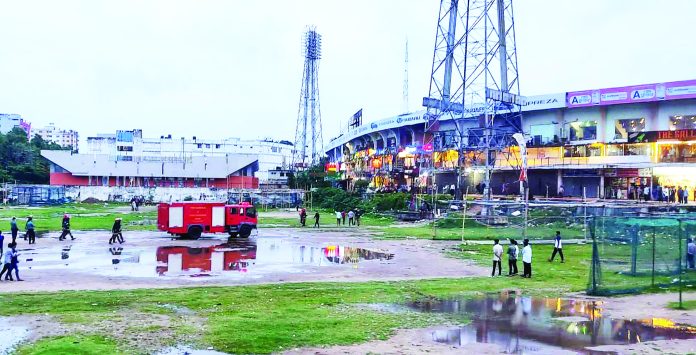 এম এ আজিজ স্টেডিয়ামের ফ্লাড লাইটের একটি টাওয়ারে অগ্নিকাণ্ডের ঘটনা ঘটেছে। গতকাল সন্ধ্যায় ফ্লাড লাইট জ্বালানো হলে আউটার স্টেডিয়াম সংলগ্ন ৪ নং টাওয়ারে হঠাৎ করেই আগুন ধরে যায়। যদিও বিকেলে একবার পরীক্ষামূলকভাবে জ্বালানো হয়েছিল একই টাওয়ারের বাতিগুলো। তখন ঠিক ছিল। কিন্তু সন্ধ্যায় জ্বালাতে গিয়ে ঘটে অগ্নিকাণ্ডের ঘটনা। গত বিশ দিন আগে এম এ আজিজ স্টেডিয়ামের উত্তর-পশ্চিম পাশে স্থাপিত ফ্লাড লাইটের সাব স্টেশনে আগুন ধরে গিয়েছিল। স্টেশনের গিয়ার বঙ এবং তার কেটে যাওয়ায় সেদিন অগ্নিকাণ্ড ঘটেছিল। গত কয়দিন ধরে সে সাব স্টেশন ঠিক করা হয়েছে। আর গতকাল পরীক্ষামূলকভাবে চালানো হয় ফ্লাড লাইট। বিকেলে কোনো বিপত্তি না ঘটলেও সন্ধ্যায় ঘটে অগ্নিকাণ্ড। স্টেডিয়ামের ফ্লাড লাইটের দায়িত্বে থাকা এক কর্মকর্তা জানিয়েছেন ফ্লাড লাইটের চার নম্বর টাওয়ারের সুইচ বঙগুলোতে আগুন ধরে যায়। সেখানে প্রচুর পাখির বাসা রয়েছে এবং বৃষ্টির পানি পড়ায় স্পার্ক করেছে। টাওয়ার থেকে ধোয়া বের হলে আতংক ছড়িয়ে পড়ে। তবে আগুন বেশিক্ষণ জ্বলেনি। ঘটনাস্থলে এসেছিল ফায়ার সার্ভিসের একটি দল। এ দিকে চার নম্বর টাওয়ারে আগুন ধরলেও বাকি তিনটি টাওয়ারের বাতি জ্বলেছে ঠিকমত। গতকাল বিকেলে এম এ আজিজ স্টেডিয়ামে শুরু হয়েছে বঙ্গবন্ধু এবং বঙ্গমাতা গোল্ডকাপ ফুটবল টুর্নামেন্ট। আর সন্ধ্যায় শুরু হয়েছে হ্যান্ডবল লিগ। ফ্লাড লাইটের আলোয় চলেছে হ্যান্ডবল লিগের খেলা। আগুনে কি পরিমাণ ক্ষয়ক্ষতি হয়েছে তা নিরূপণ করে তবেই টাওয়ারের বাতিগুলো জ্বালানোর সিদ্ধান্ত নেওয়া হবে।