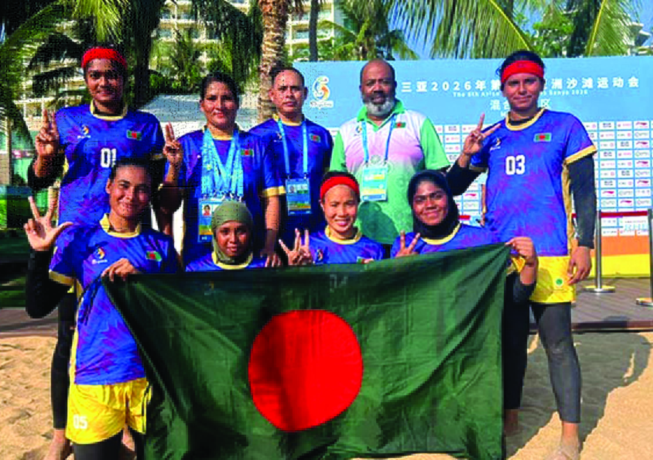 এশিয়ান বীচ গেমসে নারী কাবাডির সেমিফাইনালে ভারতের কাছে হারলেও বড় এক মাইলফলক স্পর্শ করেছে বাংলাদেশ। টুর্নামেন্টের সেমিফাইনালে পৌঁছে ব্রোঞ্জ নিশ্চিত করার মাধ্যমে দীর্ঘ ১৪ বছর পর এই আসর থেকে পদক পুনরুদ্ধার করল বাংলাদেশের মেয়েরা। ২০১২ সালের পর এশিয়ান বীচ গেমসের কাবাডিতে এটিই বাংলাদেশের প্রথম পদক জয়। চীনের সানিয়ায় এশিয়ান বীচ গেমস নারী কাবাডির ফাইনালে ওঠার লড়াইয়ে ভারতের শক্তিশালী বাঁধা টপকাতে পারেনি বাংলাদেশ। সেমিফাইনালের হাই–ভোল্টেজ ম্যাচে ভারতের কাছে ৫০–৩১ পয়েন্টে পরাজিত হয়েছে লাল–সবুজের প্রতিনিধিরা। তবে ফাইনালে পৌঁছাতে না পারলেও খালি হাতে ফিরছে না বাংলাদেশ। সেমিফাইনালে খেলায় নিয়ম অনুযায়ী নিশ্চিত হয়েছে বাংলাদেশের ব্রোঞ্জ পদক। টুর্নামেন্টের শুরু থেকেই দুর্দান্ত খেলা বাংলাদেশের নারী দলটি র্যাংকিংয়ে তৃতীয় স্থান নিয়ে আসর শেষ করল। ম্যাচের শুরু থেকেই ভারতীয় ডিফেন্ডার এবং রেইডারদের সাথে পাল্লা দিয়ে লড়াই করার চেষ্টা করেন বাংলাদেশের মেয়েরা। প্রথমার্ধের খেলা শেষে স্কোর ছিল ভারত ২২–১৫ বাংলাদেশ। মাত্র ৭ পয়েন্টের ব্যবধান থাকায় বিরতি পর্যন্ত ম্যাচে ফেরার ভালো সম্ভাবনা টিকিয়ে রেখেছিল বাংলাদেশ। তবে দ্বিতীয়ার্ধে খেই হারিয়ে ফেলে বাংলাদেশের রক্ষণভাগ। ভারতের অভিজ্ঞ রেইডারদের পয়েন্ট সংগ্রহের ঝড়ে ব্যবধান দ্রত বাড়তে থাকে। শেষ বাঁশি বাজার সময় স্কোরবোর্ডে ভারতের সংগ্রহ দাঁড়ায় ৫০, আর বাংলাদেশ থামে ৩১ পয়েন্টে। শেষ পর্যন্ত ১৯ পয়েন্টের ব্যবধানে জয় নিয়ে খেলা শেষ করে ভারত। সেমিফাইনালে হারলেও টুর্নামেন্টের সামগ্রিক পারফরম্যান্সে গর্ব করার মতো অনেক কিছুই আছে বাংলাদেশের জন্য। নকআউট পর্বে পৌঁছানোর মাধ্যমেই বাংলাদেশের পদক জয় নিশ্চিত হয়েছিল। টুর্নামেন্টের র্যাংকিং অনুযায়ী তৃতীয় স্থানে থেকে এবারের আসর শেষ করল বাংলাদেশ নারী দল। এর আগে গ্রুপ পর্বের প্রথম দুই ম্যাচে থাইল্যান্ড ও চাইনিজ তাইপেকে বিশাল ব্যবধানে হারিয়ে সেমিফাইনাল নিশ্চিত করেছিল বাংলাদেশ। যদিও গতকাল সকালে গ্রুপের শেষ ম্যাচে নেপালের কাছে দারুন লড়াইয়ের পর ৩৬–৩৮ পয়েন্টে পরাজয় বরণ করতে হয় তাদের।
