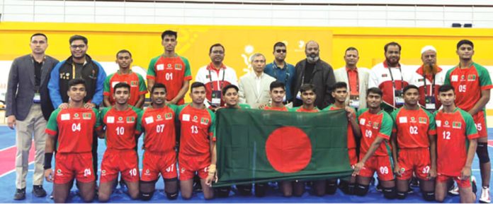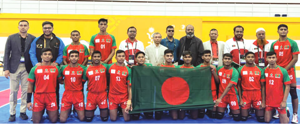 বাহরাইনে অনুষ্ঠিত তৃতীয় এশিয়ান যুব গেমসে নতুন ইতিহাস লিখলো বাংলাদেশ। মেয়েদের সাফল্যের পর এবার অনূর্ধ্ব–১৮ ছেলেরা কাবাডি দলও ব্রোঞ্জ পদক জিতেছে। এটি এই গেমসে দেশের দ্বিতীয় পদক। ঈসা স্পোর্টস সিটিতে অনুষ্ঠিত তৃতীয় স্থান নির্ধারণী ম্যাচে বাংলাদেশ বালক কাবাডি দল স্বাগতিক বাহরাইনকে ১০৬–১৭ পয়েন্টের বিশাল ব্যবধানে উড়িয়ে দিয়ে ব্রোঞ্জ পদক নিশ্চিত করে। এর আগে গেমসে বাংলাদেশের হয়ে প্রথম পদকটি জিতেছিল অনূর্ধ্ব–১৮ নারী কাবাডি দল। মেয়েরা শ্রীলঙ্কাকে হারিয়ে ব্রোঞ্জ পদক জিতেছিল। ছেলেদের এই জয়ে এবারের আসরে বাংলাদেশ এখন পর্যন্ত দুটি ব্রোঞ্জ পদক অর্জন করলো, যার দুটিই এসেছে কাবাডি থেকে। টুর্নামেন্টে লাল–সবুজের প্রতিনিধিদের শুরুটা অবশ্য কঠিন ছিল। প্রথম ম্যাচে তারা শক্তিশালী ভারতের কাছে হেরে যায়। তবে দ্বিতীয় ম্যাচে ইরানকে হারিয়ে দারুণভাবে ঘুরে দাঁড়ায় বাংলাদেশ। এরপর শ্রীলঙ্কার বিপক্ষে টানা দ্বিতীয় জয় পেলেও থাইল্যান্ডের কাছে দুর্ভাগ্যজনকভাবে অল্প ব্যবধানে পরাজিত হয়ে ফাইনালের দৌড় থেকে ছিটকে পড়ে দলটি। তবুও শেষ দুই ম্যাচে পাকিস্তান এবং বাহরাইনকে হারিয়ে পদক জয় নিশ্চিত করে তারা। উল্লেখ্য, এর আগে অনুষ্ঠিত এশিয়ান যুব গেমসের দুটি আসরে অংশ নিলেও বাংলাদেশ কোনো পদক জিততে পারেনি। এবারের আসরে কাবাডিতে একযোগে ছেলে ও মেয়েদের এই সাফল্য বাংলাদেশের জন্য নতুন অধ্যায় রচনা করলো।