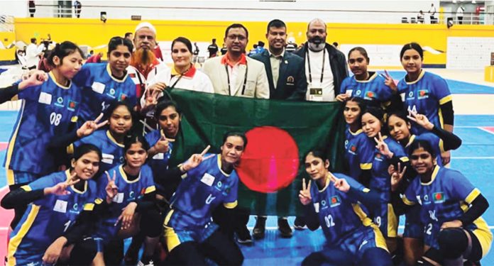 এশিয়ান যুব গেমসে পদক জিতে ইতিহাস সৃষ্টি করলো বাংলাদেশ অনূর্ধ্ব–১৮ নারী কাবাডি দল। বাহরাইনে তৃতীয় এশিয়ান যুব গেমসে শ্রীলঙ্কাকে হারিয়ে প্রথম পদক নিশ্চিত করে বাংলাদেশের মেয়েরা। গেমসের ইতিহাসে এটিই বাংলাদেশের প্রথম পদক জয়। আগের দুই আসরে অংশ নিয়েও কোনো পদক জিততে পারেনি বাংলাদেশ। কিন্তু এবার কাবাডির হাত ধরে সেই আক্ষেপ ঘুচল। মেয়েদের কাবাডিতে প্রতিদ্বন্দ্বিতা করছে বাংলাদেশ, ভারত, ইরান, শ্রীলংকা ও থাইল্যান্ড। এই ইভেন্টে সেরা চারে থাকা দলগুলোর পদক নিশ্চিত হওয়ায় শ্রীলঙ্কাকে পরাজিত করে ব্রোঞ্জ পদক জয় করে বাংলাদেশের মেয়েরা। গতকাল বাহরাইনের ঈসা স্পোর্টস সিটিতে অনুষ্ঠিত ম্যাচে তীব্র প্রতিদ্বন্দ্বিতা হয় বাংলাদেশ ও শ্রীলঙ্কার মধ্যে। প্রথমার্ধে বাংলাদেশ ২৫–১৮ পয়েন্টের ব্যবধানে ৭ পয়েন্টে এগিয়ে ছিল। তবে দ্বিতীয়ার্ধে হাড্ডাহাড্ডি লড়াইয়ে দুই দলই ২২ পয়েন্ট করে স্কোর করে। কিন্তু প্রথমার্ধে অর্জিত অগ্রগতির কারণে শেষ পর্যন্ত ৪৭–৪০ পয়েন্টের ব্যবধানে শ্রীলঙ্কাকে হারায় বাংলাদেশ। ম্যাচের শেষ বাঁশি বাজার সাথে সাথে উল্লাসে মাতে বাংলাদেশ দলের খেলোয়াড়রা। তবে পদক নিশ্চিতের আগে গ্রুপ পর্বে কঠিন চ্যালেঞ্জের মুখে পড়েছিল বাংলাদেশের নারী কাবাডি দল। তারা ভারত, ইরান ও থাইল্যান্ডের কাছে হেরে গিয়েছিল। তা সত্ত্বেও, গুরুত্বপূর্ণ ম্যাচে শ্রীলঙ্কাকে হারিয়ে দেশের জন্য ঐতিহাসিক সাফল্য বয়ে আনলো বাংলাদেশের এ নারী কাবাডি দল।