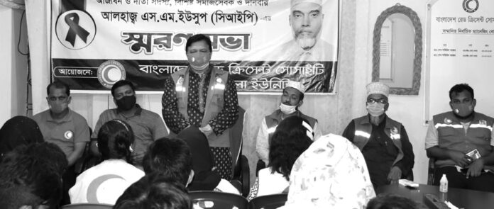 রেড ক্রিসেন্ট সোসাইটি, চট্টগ্রাম জেলা ইউনিটের উদ্যোগে আজীবন দাতা সদস্য এস এম ইউসুপ সিআইপির স্মরণসভা গত ৫ জুন অনুষ্ঠিত হয়। জেলা ইউনিটের ভারপ্রাপ্ত চেয়ারম্যান ডা. শেখ শফিউল আজমের সভাপতিত্বে ও চট্টগ্রাম যুব প্রধান গাজী মো. ইফতেকার হোসেন ইমুর সঞ্চালনায় সভায় সিটি ইউনিটের কার্যকরী পর্ষদ সদস্য মো. আনোয়ার আজম, জেলা ইউনিটের কার্যকরী পর্ষদ সদস্য ফখরুল ইসলাম চৌধুরী পরাগ ও শাহাদাত হোসেন রুমেল অংশ নেন। বক্তারা বলেন, মানবসেবী হিসেবে এস এম ইউসুপ যে অবদান রেখে গেছেন তা স্মরণীয় হয়ে থাকবে। এ সময় উপস্থিত ছিলেন যুব রেড ক্রিসেন্ট, চট্টগ্রামের সাংগঠনিক বিভাগীয় প্রধান তানভীর আহমেদ চৌধুরী মাহিন, রক্ত বিভাগীয় প্রধান দীপ্ত বিশ্বাস, স্বাস্থ্য ও সেবা বিভাগীয় প্রধান ইস্তাকুল ইসলাম চৌধুরী ইশান, কার্যকরী পর্ষদ সদস্য সুজিত রুদ্র, মো. আবদুর রহমান অপি, অভিষেক চৌধুরী, তন্ময় বড়ুয়া প্রমুখ। শেষে মরহুমের রুহের মাগফেরাত কামনা করে মোনাজাত করেন মাওলানা শিব্বির আহম্মদ ওসমান। প্রেস বিজ্ঞপ্তি।