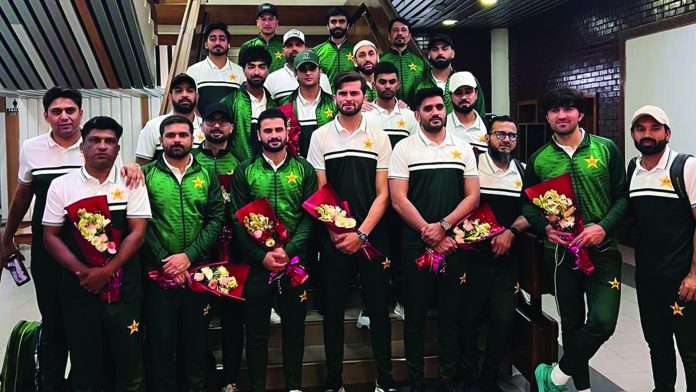 বাংলাদেশের বিপক্ষে তিন ম্যাচের ওয়ানডে সিরিজ খেলতে গতকাল রোববার ঢাকায় পৌঁছেছে পাকিস্তান জাতীয় ক্রিকেট দল। গতকাল ভোরে ঢাকার হযরত শাহজালাল আন্তর্জাতিক বিমানবন্দরে অবতরণ করেন পাকিস্তানের খেলোয়াড়রা। তবে আগের দিন আলাদাভাবে ঢাকায় পৌঁছান পাকিস্তানের সাপোর্ট স্টাফরা। ১৫ সদস্যের পাকিস্তান দলকে নেতৃত্ব দেবেন পেসার শাহিন শাহ আফ্রিদি। ২০১৫ সালের এপ্রিলে সর্বশেষ বাংলাদেশের মাটিতে দ্বিপাক্ষিক ওয়ানডে সিরিজ খেলেছিল পাকিস্তান। তিন ম্যাচের সিরিজে হোয়াইটওয়াশ হয়েছিল পাকিস্তান। আগামী ১১ মার্চ থেকে মিরপুর শেরে বাংলা জাতীয় ক্রিকেট স্টেডিয়ামে ওয়ানডে সিরিজ শুরু করবে বাংলাদেশ ও পাকিস্তান। সিরিজ শুরুর আগে সোমবার এবং মঙ্গলবার দু’টি অনুশীলন সেশন করবে আফ্রিদির দল। একই ভেন্যুতে সিরিজের শেষ দুই ওয়ানডে হবে যথাক্রমে– ১৩ এবং ১৫ মার্চ। পাকিস্তান দল : শাহিন শাহ আফ্রিদী (অধিনায়ক), আব্দুল সামাদ, আবরার আহমেদ, ফাহিম আশরাফ, ফয়সাল আকরাম, হারিস রউফ, হুসেইন তালাত, মাজ সাদাকাত, মোহাম্মদ রিজওয়ান (উইকেটরক্ষক), মোহাম্মদ ওয়াসিম জুনিয়র, মুহাম্মদ গাজী ঘোরি (উইকেটরক্ষক), সাদ মাসুদ, সাহিবজাদা ফারহান, সালমান আলি আগা ও শামিল হুসেইন।