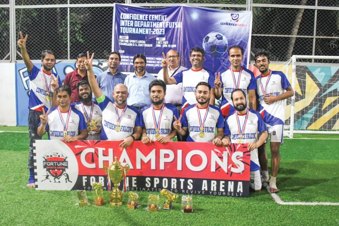 কনফিডেন্স সিমেন্ট আন্তঃবিভাগ ফুটসাল টুর্নামেন্ট গত ৭ অক্টোবর চান্দগাঁও আবাসিকে অবস্থিত ফরচুন স্পোর্টস এরিনাতে সম্পন্ন হয়েছে। এতে কনফিডেন্স সিমেন্টের অফিসারদের নিয়ে ছয়টি দল কনফিডেন্স এসপেক্টিক্যুলার্স, কনফিডেন্স কিংস, কনফিডেন্স লায়ন্স, কনফিডেন্স পাওনিয়ারস, কনফিডেন্স ভাইকিংস এবং কনফিডেন্স ফ্যালকনস অংশ নেয়। প্রধান অতিথি হিসেবে টুর্নামেন্টের আনুষ্ঠানিক উদ্বোধন ও পুরস্কার বিতরণ করেন কনফিডেন্স সিমেন্টের প্রধান হিসাব কর্মকর্তা নেওয়াজ মোহাম্মদ ইকবাল ইউসুফ। এতে বিশেষ অতিথি ছিলেন সিনিয়র জিএম ফারুক আহমেদ, ডিজিএম শেখ সুলতান আহমেদ তালুকদার, এইচআরবিপি মোহাম্মদ আজিম, এজিএম মিরাজুর রহমান, সিনিয়র ম্যানেজার মো. আলমগীরসহ উর্ধ্বতন কর্মকর্তাবৃন্দ। ছয়টি দলের অংশগ্রহণে খেলা বিকেল ৫ টায় শুরু ও রাত ১০টায় পুরস্কার বিতরণের মাধ্যমে শেষ হয়। এতে চ্যাম্পিয়ন হয় কনফিডেন্স ফ্যালকনস ও রানার আপ হয় কনফিডেন্স কিংস। টুর্নামেন্টে সিনিয়র, জুনিয়র কর্মকর্তারা বিভিন্ন দলকে সমর্থন দিয়ে খেলার মাঠ মাতিয়ে রাখেন।