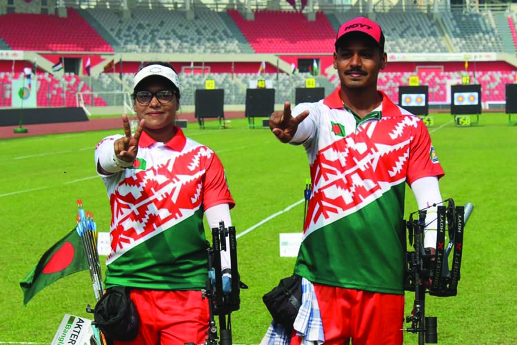 এশিয়ান আরচ্যারী চ্যাম্পিয়নশিপে এবার সেরা প্রাপ্তির সম্ভাবনা জাগিয়েছে বাংলাদেশ। কম্পাউন্ড মিক্সড ইভেন্টের ফাইনালে উঠেছে বন্যা আক্তার–হিমু বাছাড়কে নিয়ে গড়া লাল–সবুজের দল। জাতীয় স্টেডিয়ামে বুধবার সেমি–ফাইনালে শক্তিশালী দক্ষিণ কোরিয়ান জুটিকে ১৫৮–১৫৩ (৩৭–৩৯, ৩৮–৩৯, ৩৯–৪০, ৩৯–৪০) ব্যবধানে হারায় বাংলাদেশ। ভূটানকে ১৫৪–১৪৮ স্কোরে হারিয়ে এই ইভেন্টের এলিমিনেশন রাউন্ড শুরু করা বাংলাদেশ কোয়ার্টার–ফাইনালে মুখোমুখি হয় ইরানের। সেখানে ১৫৪–১৫৪ সমতার পর টাইব্রেকারে ১৯–১৮ ব্যবধানে শ্বাসরুদ্ধকর জয় তুলে নেয়ে বাংলাদেশ। এরপর সকালের সেশনে মুখোমুখি হয় শক্তিশালী দক্ষিণ কোরিয়ার। সেখানেও বাজিমাত করে বন্যা–হিমু জুটি। বৃহস্পতিবার স্বর্ণ পদকের লড়াইয়ে ভারতের মুখোমুখি হবে বাংলাদেশ। ফাইনালের টিকেট পাওয়া হিমু বাছাড়া বলেন, ‘ফাইনালে উঠেছি, এটা আমাদের দুজনের জন্যই আনন্দের। এর আগে আমরা তিন থেকে চারটা আন্তর্জাতিক ইভেন্ট খেলেছি একসাথে, কিন্তু কোনো পদক ছিল না। এই প্রথম আমরা ফাইনালে উঠলাম। ভালো করার লক্ষ্য আমাদের। সবসময় চেষ্টা ছিল দেশের জন্য কিছু করার।’ বন্যা আক্তার বলেন, ‘আমাদের এ পর্যন্ত তেমন কোনো ভালো ফল হয়নি। আশা করি, এবার হবে। সবশেষ ২০২৪ সালে ভূটানে ব্যক্তিগত ইভেন্টে রূপা পেয়েছিলাম। জাতীয় দলে নয় বছর ধরে আছি। আশা করি, এবার ভালো কিছু হবে।’
