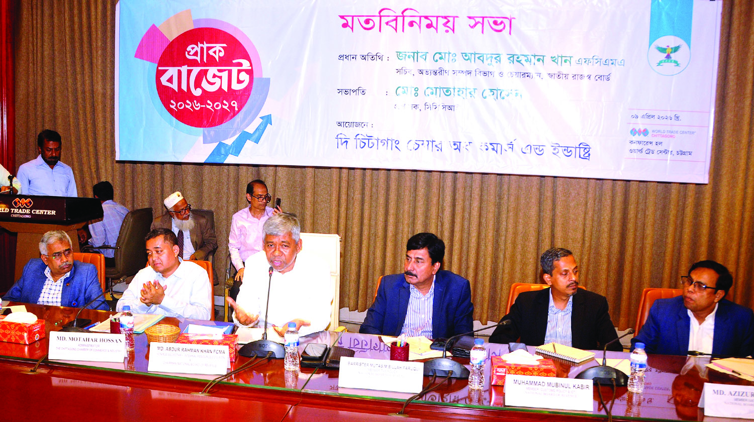 গতকাল বিকেলে নগরীর আগ্রাবাদ ওয়ার্ল্ড ট্রেড সেন্টারের কনফারেন্স হলে আগামী ২০২৬–২০২৭ অর্থ বছরের জাতীয় বাজেট প্রণয়নের প্রাক্কালে চিটাগাং চেম্বার অব কমার্স এন্ড ইন্ডাস্ট্রির সদস্য ও চট্টগ্রাম অঞ্চলের ব্যবসায়ী নেতাদের সাথে প্রাক–বাজেট মতবিনিময় সভায় প্রধান অতিথির বক্তব্যে তিনি এসব কথা বলেন।